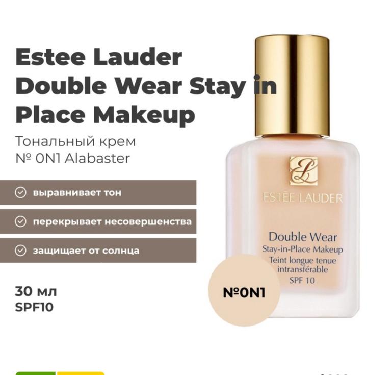 Estee Lauder Double Wear Stay-in-Place Makeup Оттенок 0N1 Alabaster (30 мл, SPF 10) Пользовалась всего 3–4 раза. Состояние почти идеальное. Оттенок светлый, отлично выравнивает тон кожи и перекрывает несовершенства. Очень стойкий, держится весь день. Продаю, потому что не совсем подошёл оттенок. Артикул: 480060