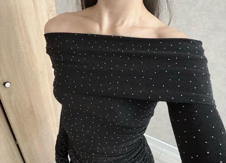 Черное платье с блестками, со пушенными плечами, платье в пол обтягивающее (выглядит как на последнем фото) очень длинное, на маленький рост не подойдет. Надевала всего раз, в хорошем состоянии Артикул: 480149