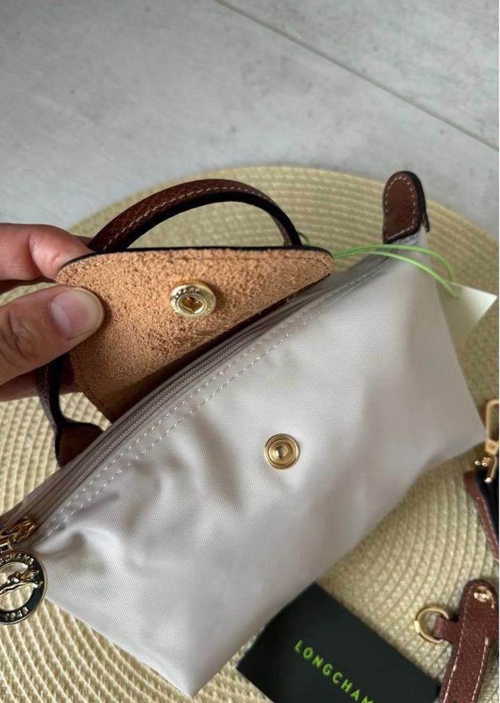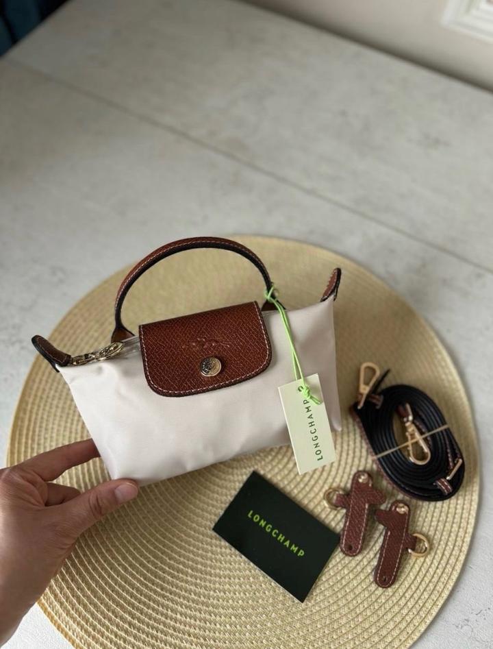 Люкс качества. Почти новый. Отличное состояние. Мини-сумка, материал — нейлон. Цвет бежевый. Размеры: ширина 16 см, высота 7 см, глубина 6 см. Застежка: кнопка и молния. Есть карманы и плечевой ремень. Подходит для ношения на плече, через плечо и в руке. Артикул: 480169