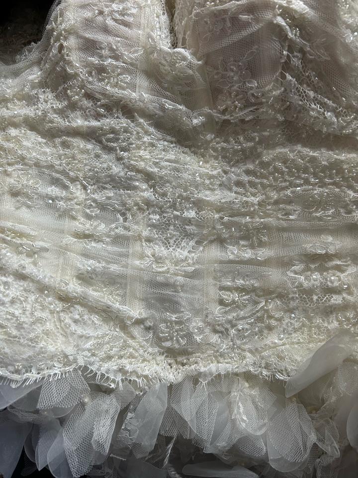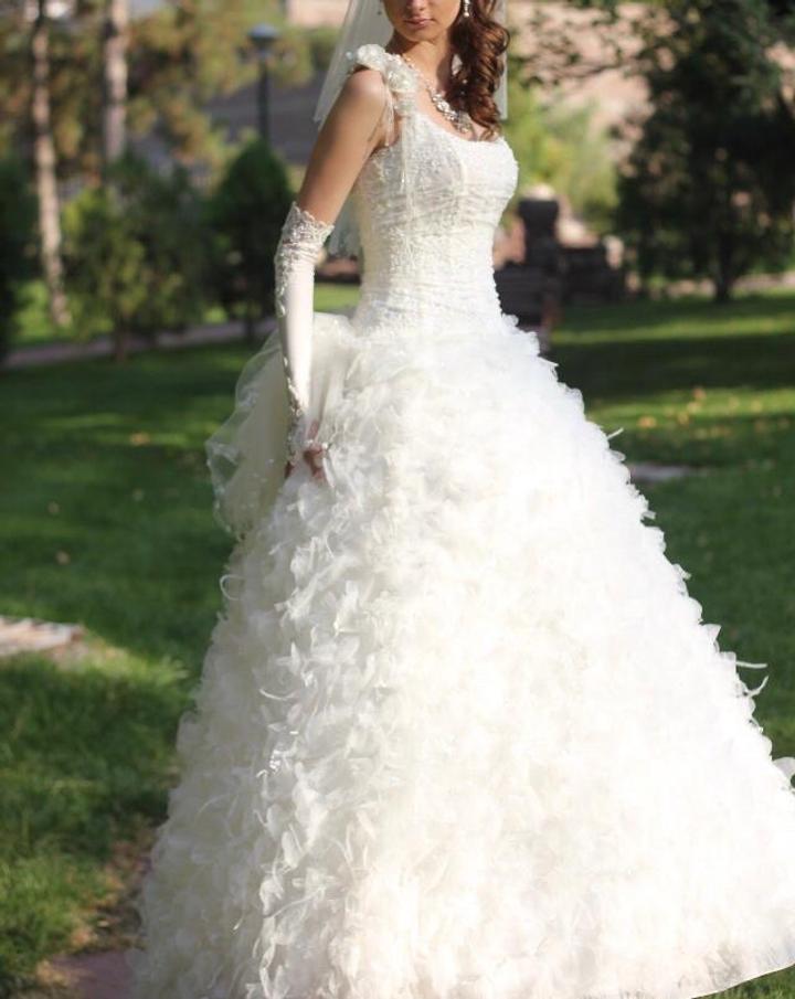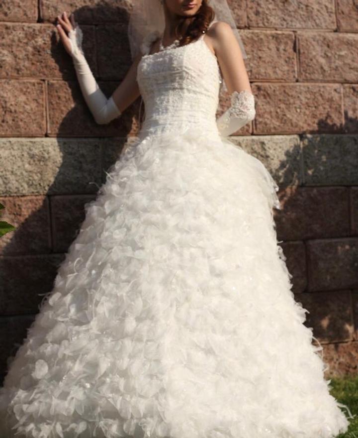 Платье фирменное, очень красивая необычная юбка с лепестками, перьями и блёстками, корсет тоже очень красиво расшит, с коллекции журнала, покупали в салоне очень дорого, размер S-М Цвет-айвори. Покупали за 1500$ Артикул: 480196