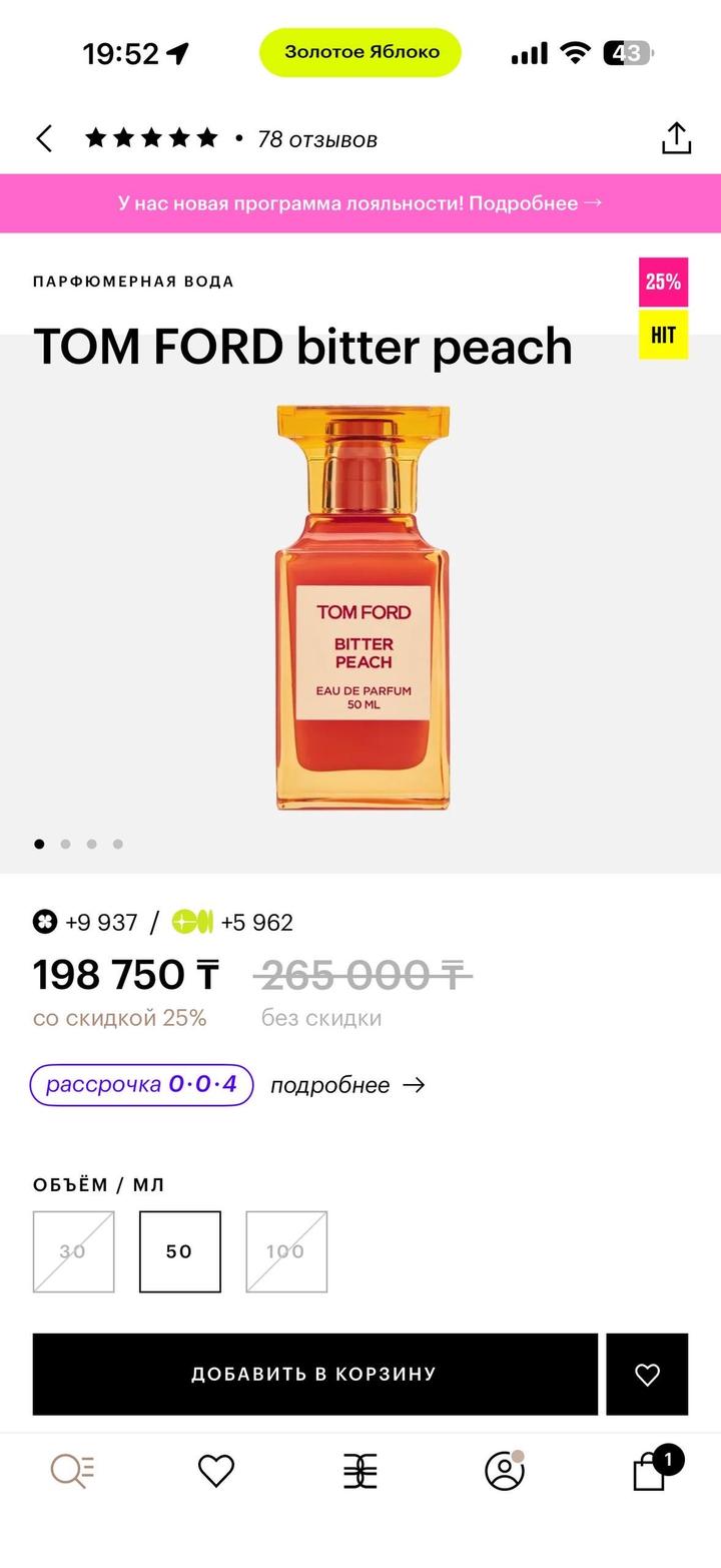 Парфюм Том Форд Горький персик 50 мл, новый парфюм, был в наборе с пробником 10 мл, продаю без пробника Не подошел аромат Артикул: 480415