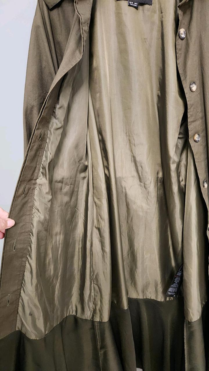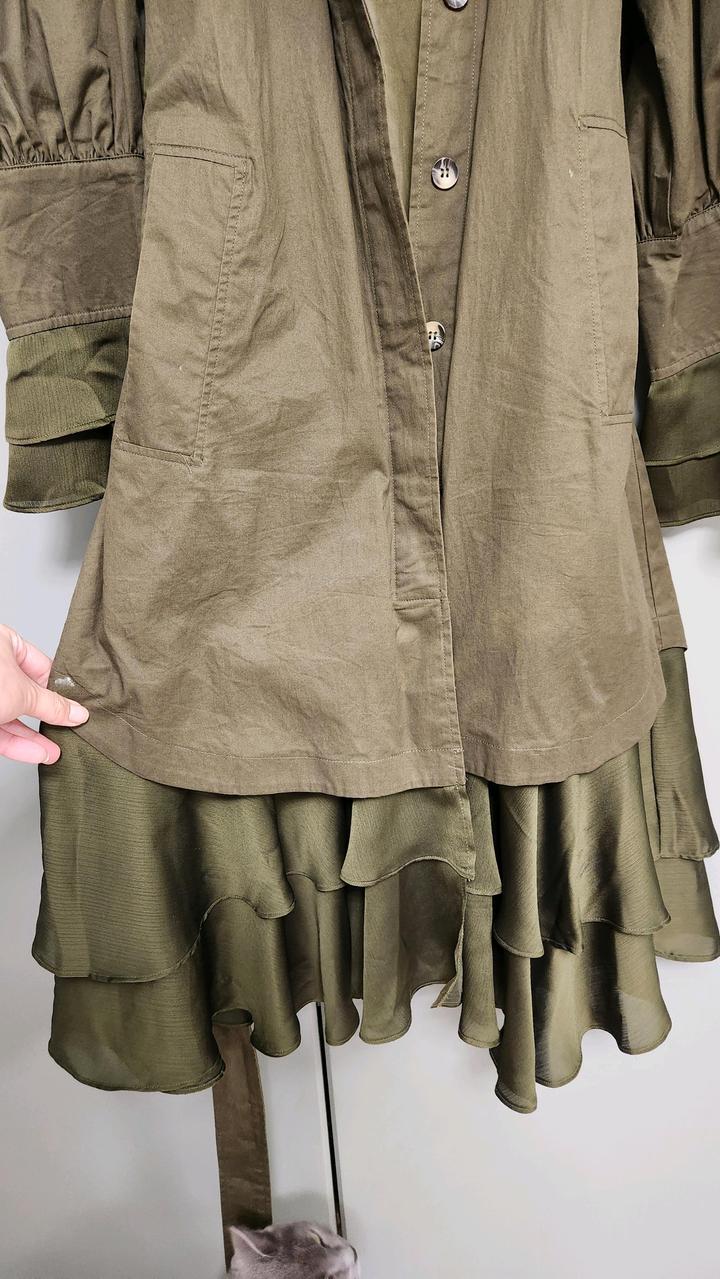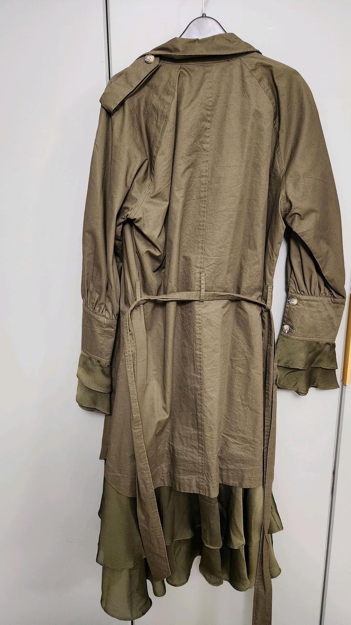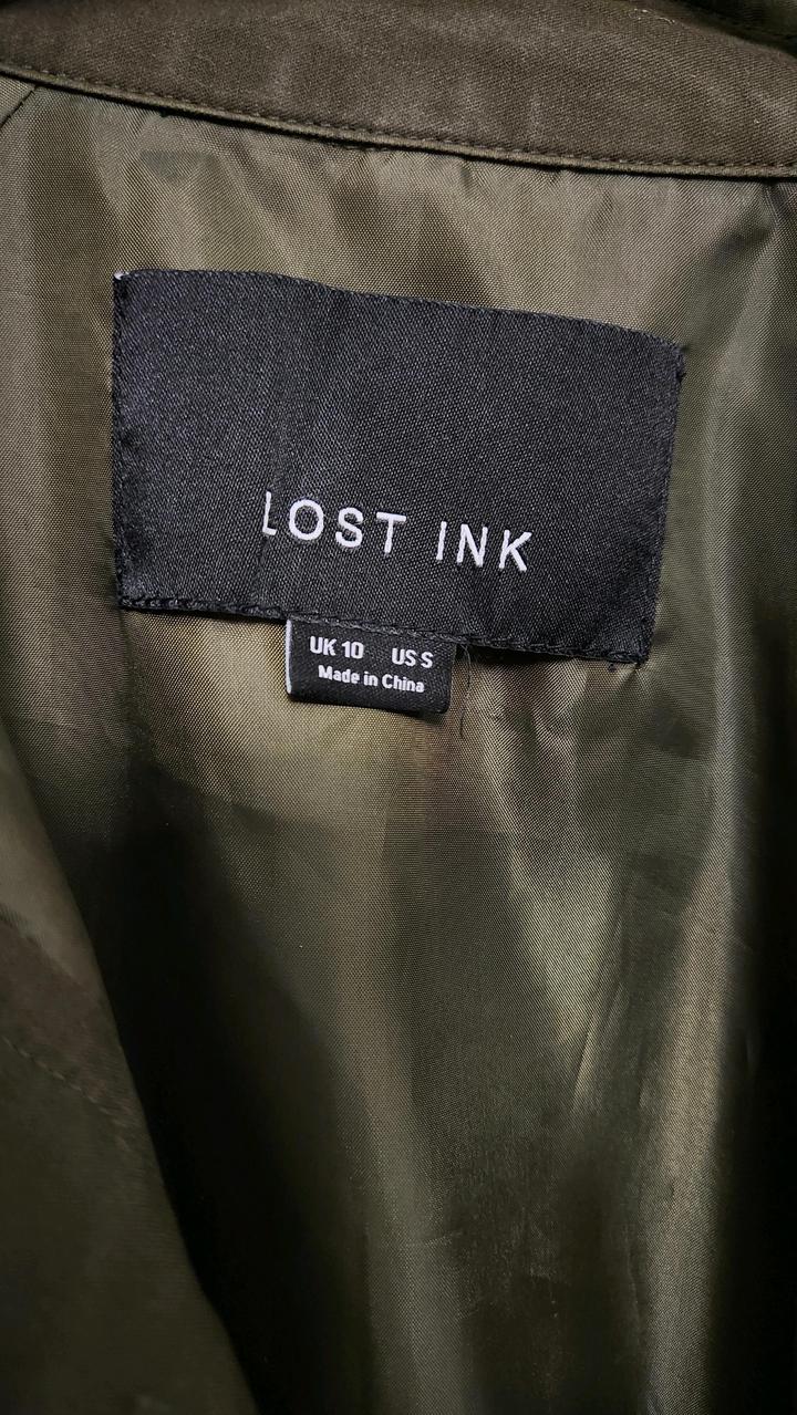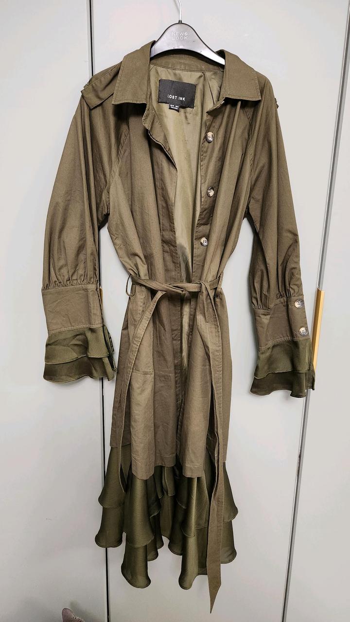 Продам необычный тренч бренда Lost Ink в цвете хаки. Размер S. Ткань тонкий хлопок, на подкладе, на рукавами и по подольше волны. Артикул: 480482