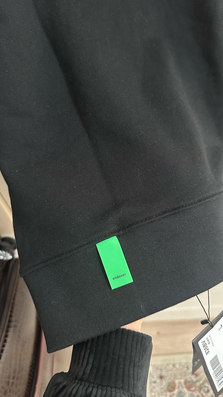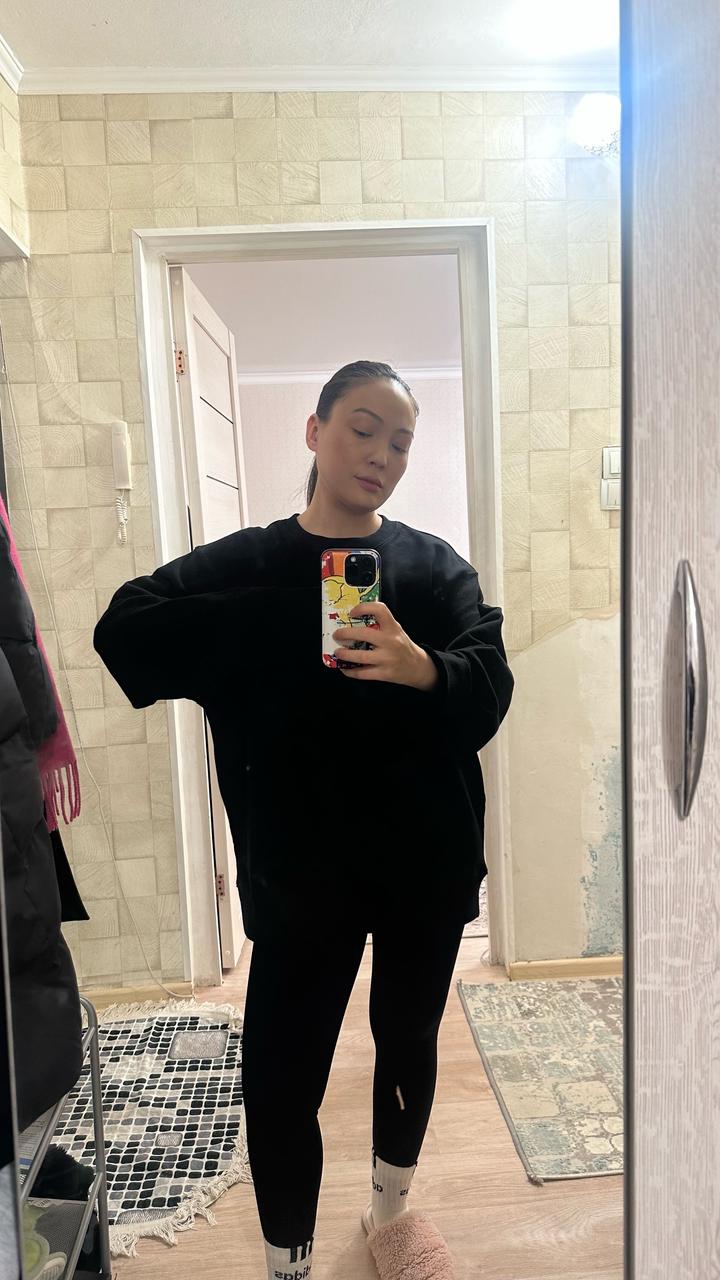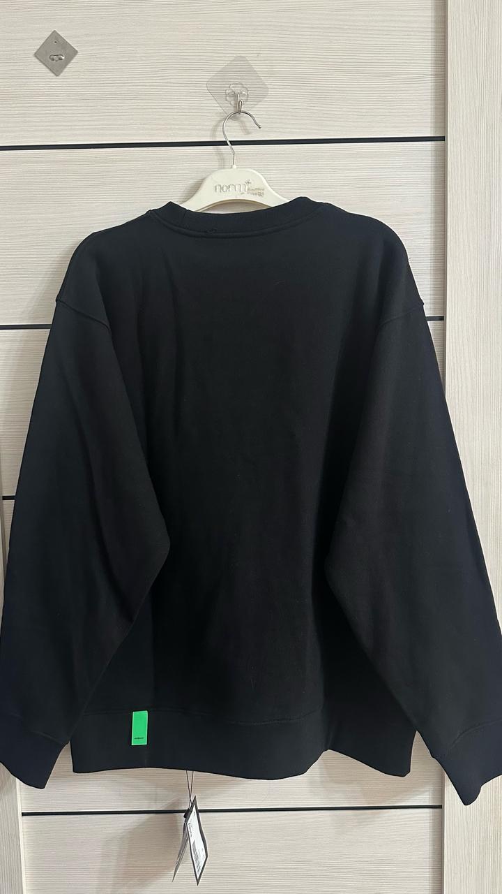 Уни свитшот от корейского бренда. Новая с биркой. 100% хлопок. Качество ткани супер. Базовый чёрный цвет, минималистичный дизайн с аккуратным логотипом спереди. Свободный крой, смотрится современно и легко сочетается с любыми образами-джинсы, лосины, спортивный стиль. Артикул: 480596