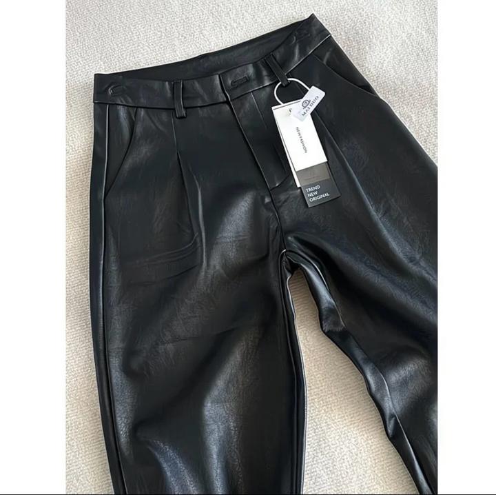 Чёрные кожаные брюки на флисе Продаю очень мягкие и комфортные кожаные брюки на флисе. Сидят красиво, нигде не тянут. Подойдут на рост до 170 см. Не блестят дешёво - выглядят аккуратно и стильно. Артикул: 480609
