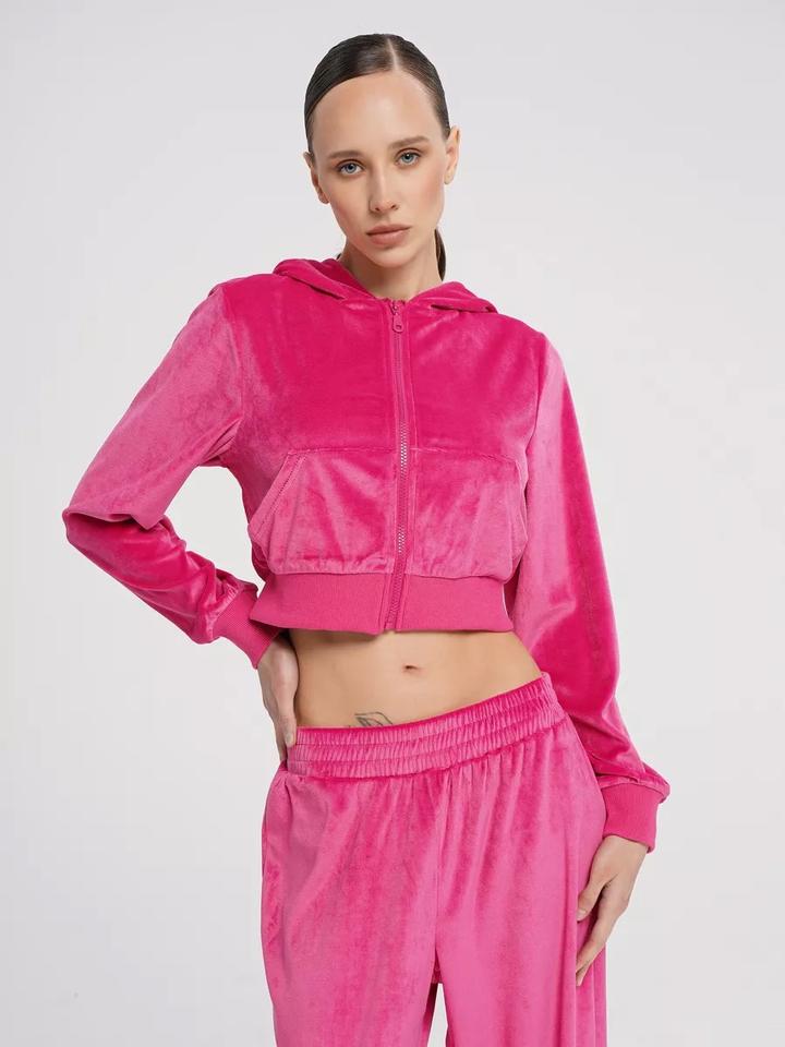 Укороченная кофта на замке в стиле Джими Чу Ярко розовый вельвет Артикул: 480787