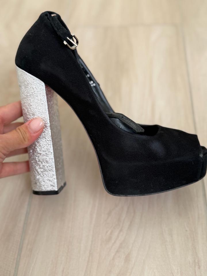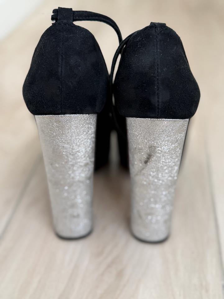 Туфли замшевый с акцентными каблуками серебряного цвета. Каблук очень устойчивый. Платформа. Артикул: 480814
