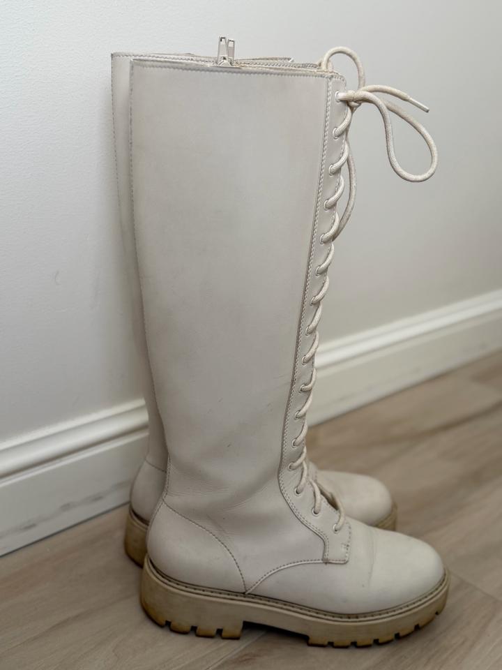 Белые весенние сапоги Чарсл Кейт. Кожа натуральная. Очень стильная. Нужна химчистка. Артикул: 480818