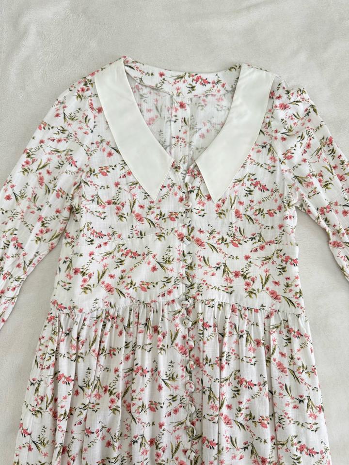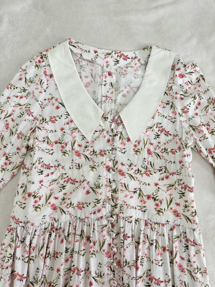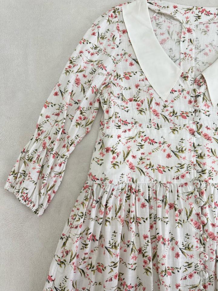 Платье длины Макси Цветочный принт и белый воротник Был сшит на заказ Размер L Артикул: 480901