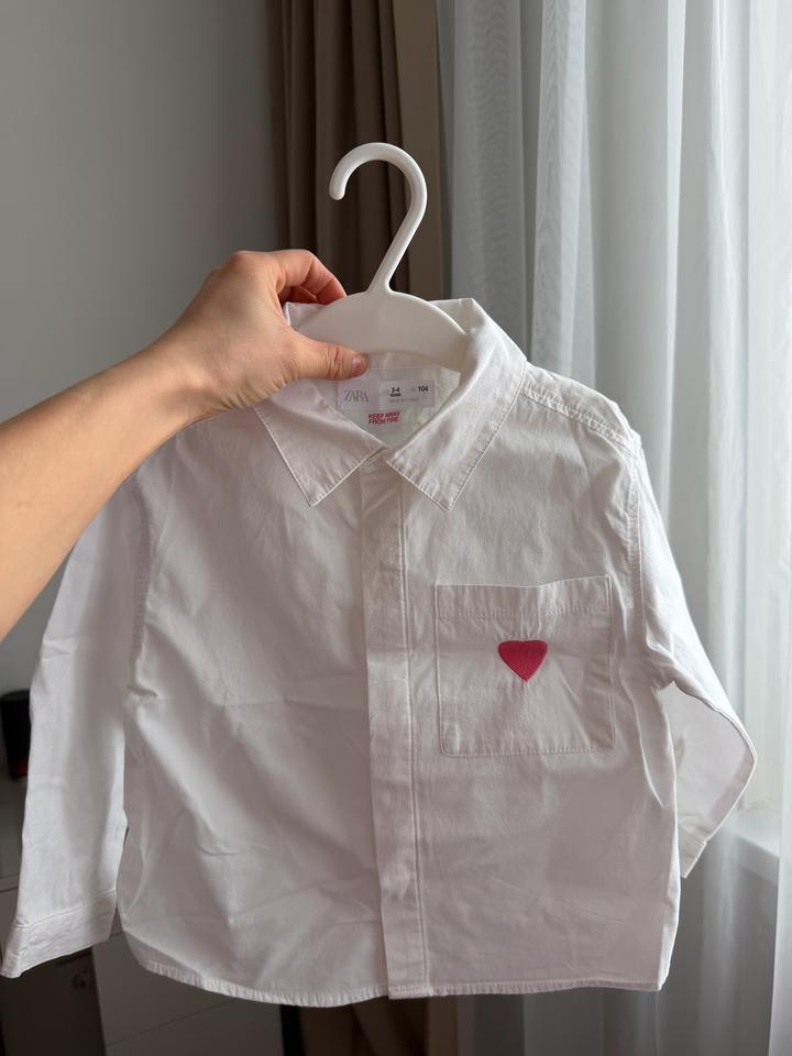 Стильная белая рубашка Zara. Есть карман с сердечком. Очень комфортная и приятная к телу. Очень красиво стилизуется с жилетками, кардиганами и жакетами. Артикул: 481020