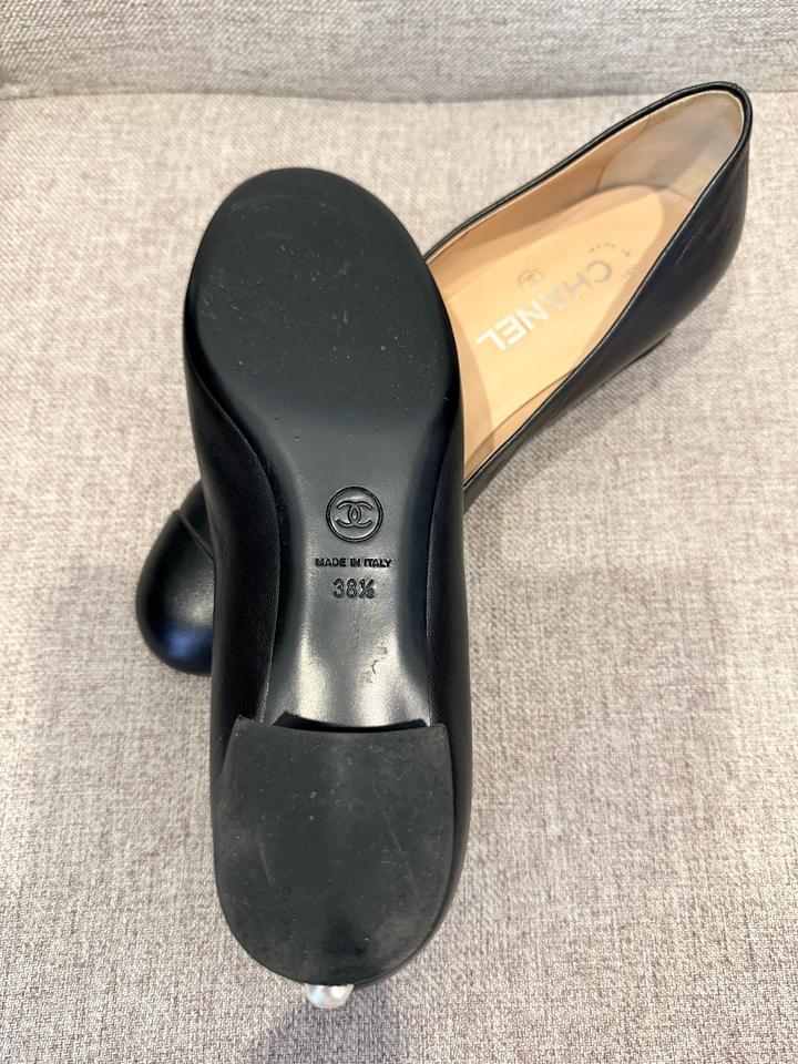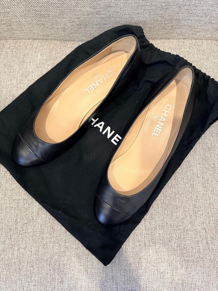 Туфли Chanel, оригинал, размер 38.5 Элегантные кожаные туфли Chanel чёрного цвета на устойчивом низком каблуке. Классическая модель с фирменным декором и логотипом бренда. Состояние очень хорошее — аккуратно носились, без повреждений, только естественный лёгкий износ подошвы. Кожа мягкая, форма сохранена. Размер 38,5 (идут размер в размер). Производство — Италия. Идеальный вариант как для офиса, так и для повседневных образов. Артикул: 481022