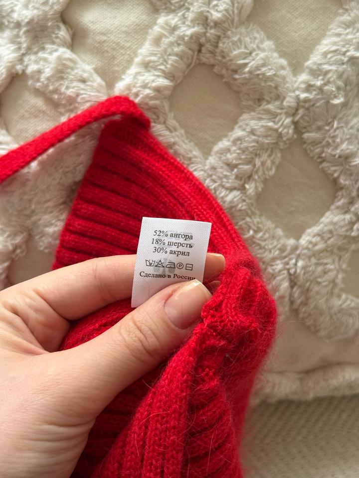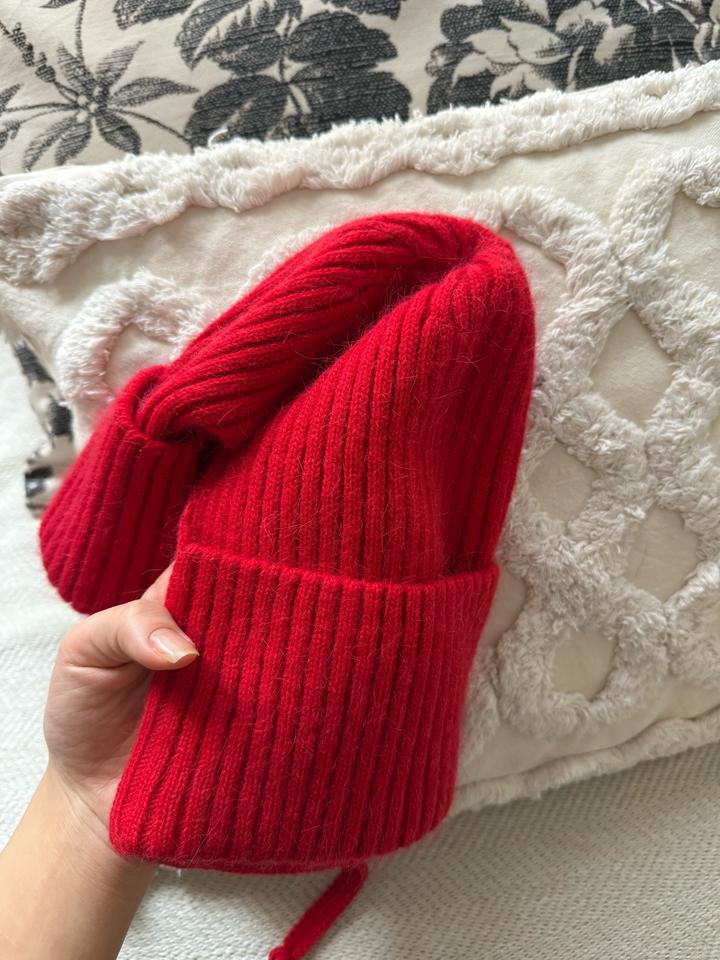 Абсолютно новая шапка в ярко красном цвете. тонкая и приятная на ощупь, из натуральной Ангоры и шерсти. Можно носить по разному; как чепчик или как обычную шапку вазязав Артикул: 481100