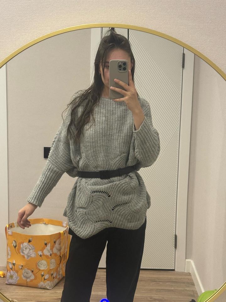 Серая кофта, можно приталить с ремнем или поясом, размер S-M Артикул: 481171