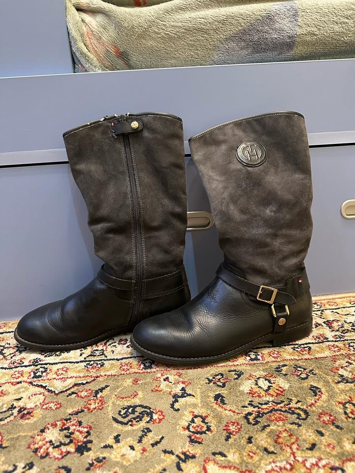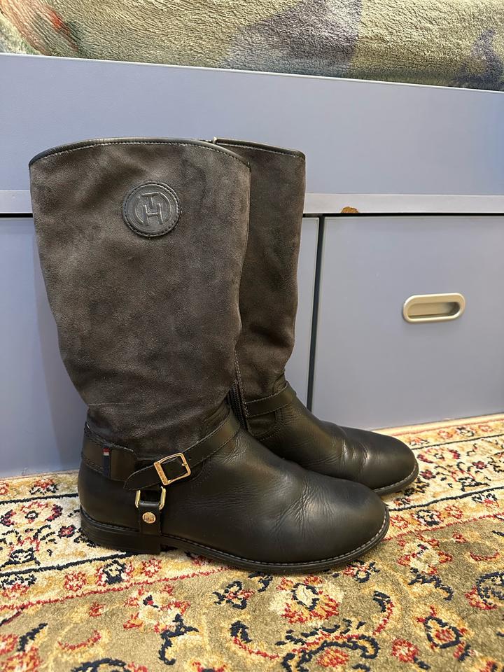 Черные кожаные-замшевые сапоги Tommy Hilfiger38