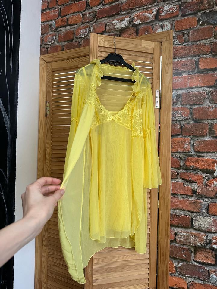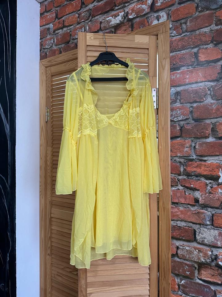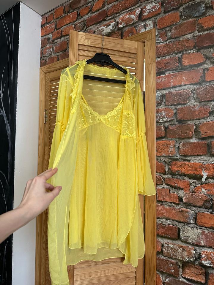 Красивая двойка, воздушный пеньюар вместе халатом. Халат также можно использовать как парео и накидку. Новый, с этикеткой. Размер one size, подойдет с 42 до 46. Артикул: 481254