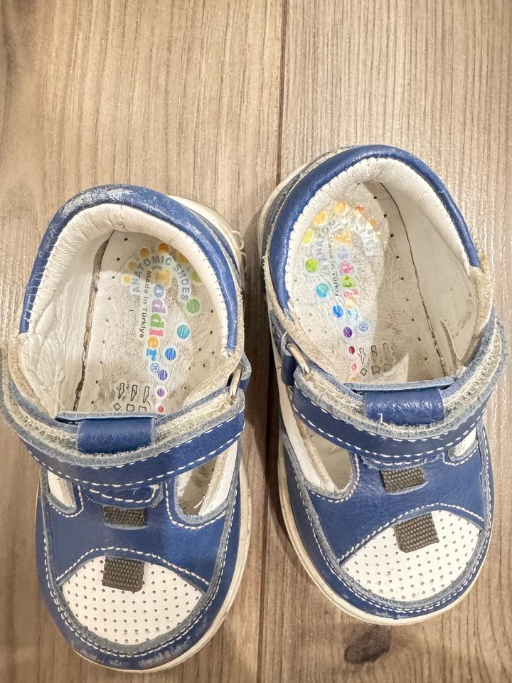 Турецкие Сандалики босоногие. Бренд Todler. Анатомические. Классно для пухлой широкой ножки. Немного потерся носик. В целом в хорошем состоянии. Размер 21. Натуральная кожа снаружи и внутри. Артикул: 481311