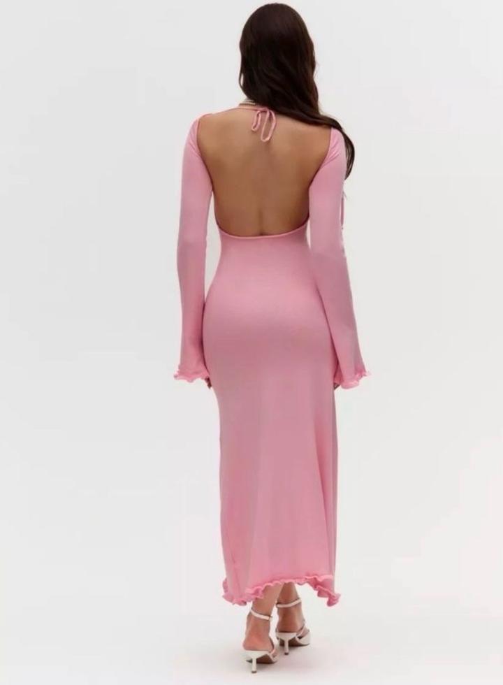 Платье из вискозы с открытой спиной. Маркирован как XS. Тянется до размера M. Новый без бирок. Пришло по WB за место другого товара. Артикул: 481351
