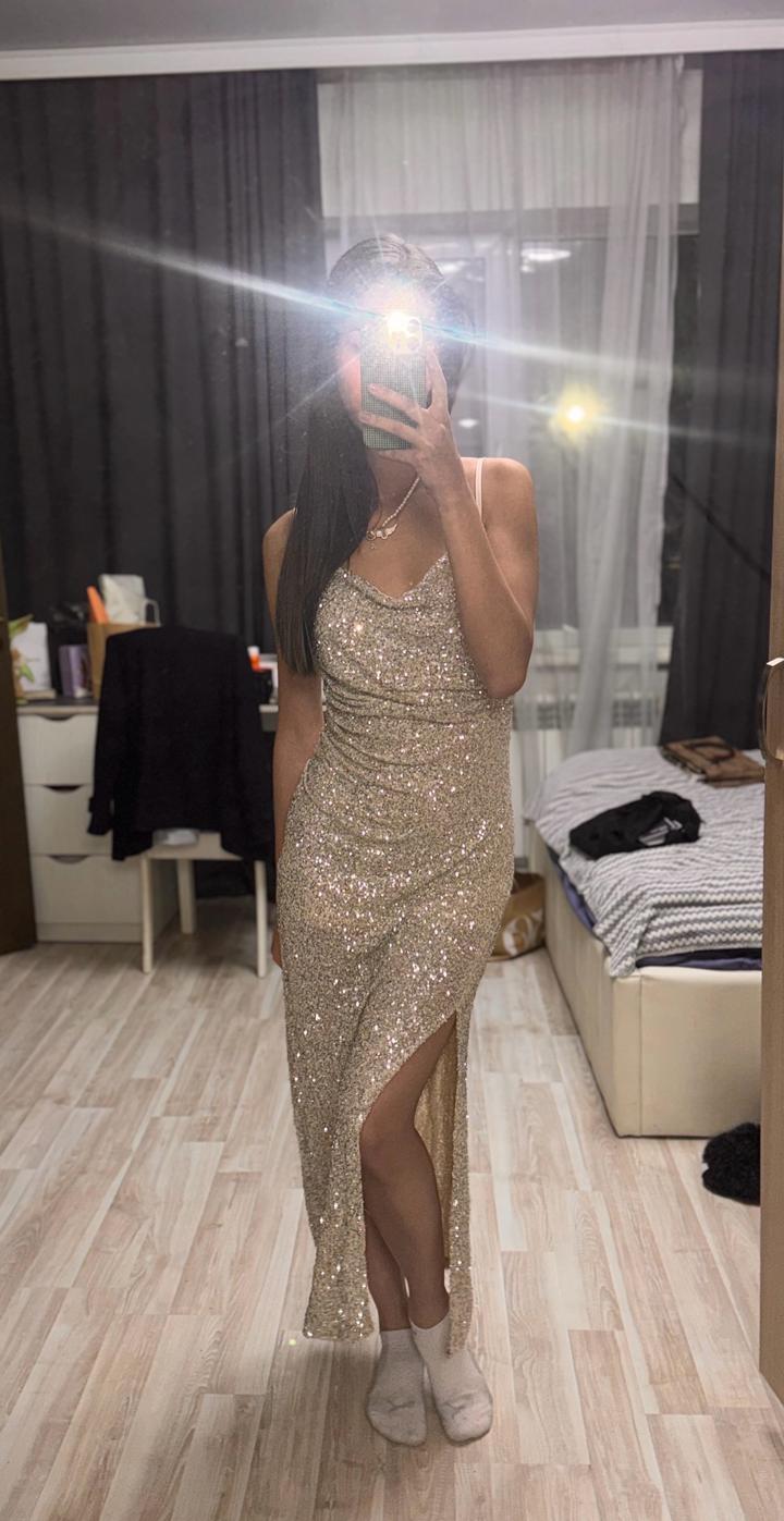 Вечернее длинное платье с паетками Цвет:шампанское Новое с биркой Размер: M/L/XL Красиво переливается на свету 😍 Артикул: 481389
