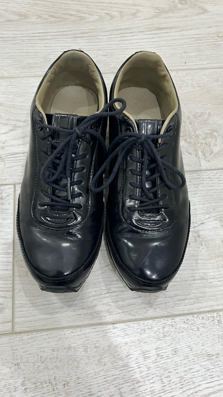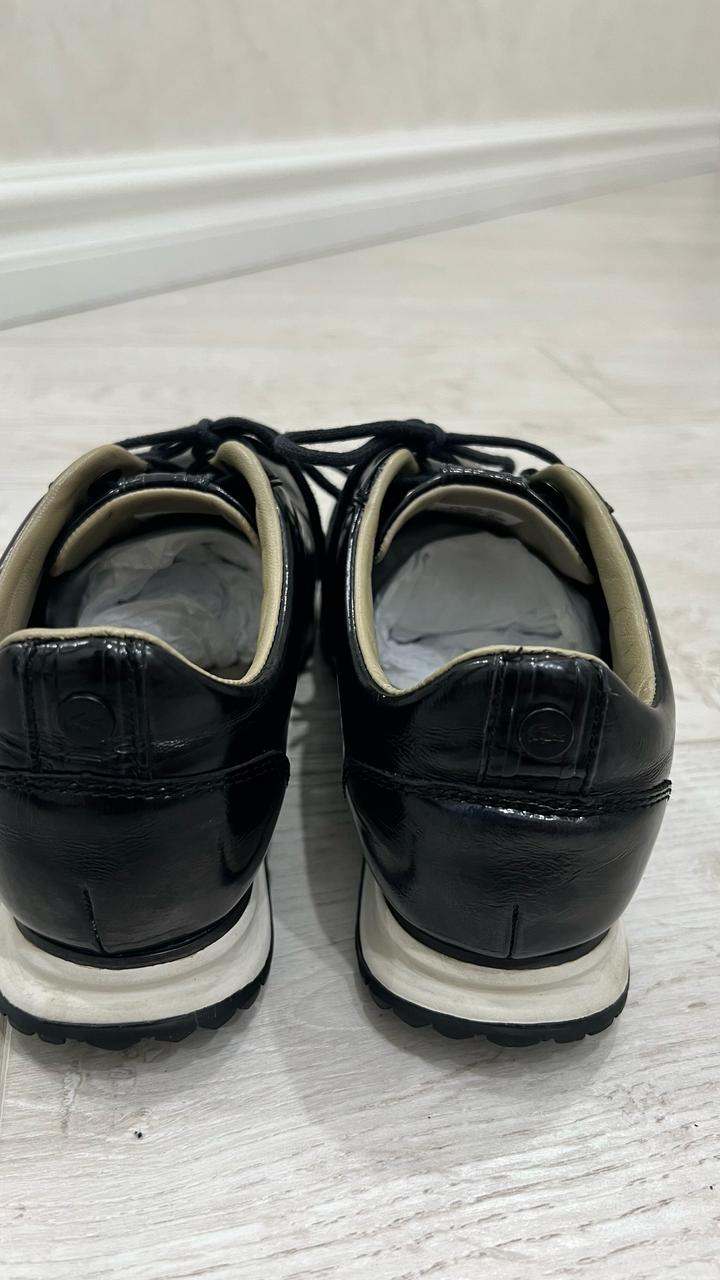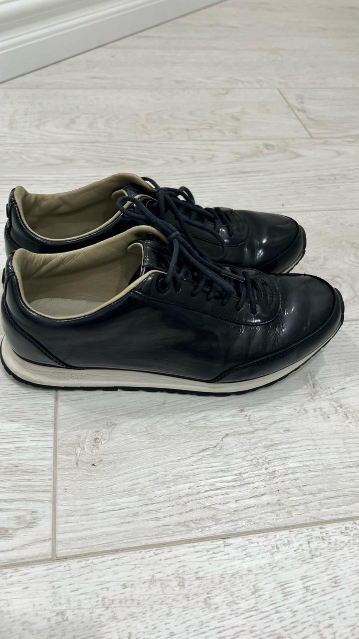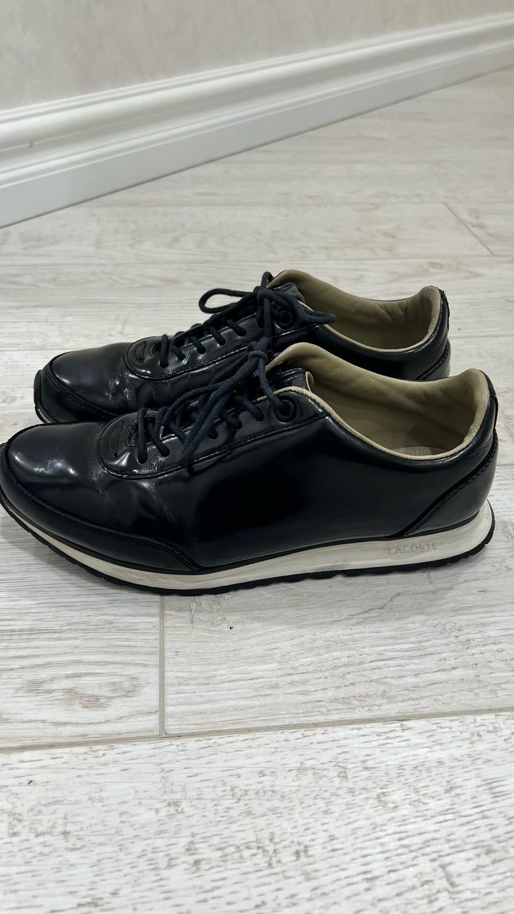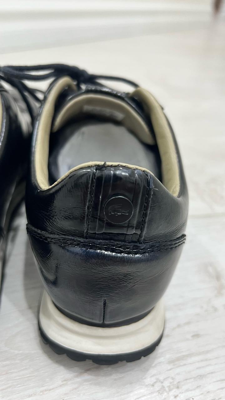 Продаются кожаные кроссовки бренда Lacoste. Натуральная лакированная кожа, внутри тоже кожаная, лёгкая. Размер 37,5 по стельке 24 см. цена 5000 тенге. Артикул: 481434