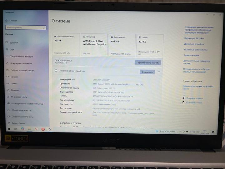 Ноутбук Acer Aspire 3 15.6" / 16 Гб / SSD 512 Гб / DOS / A315-44P-R28G / NX.KSJE-