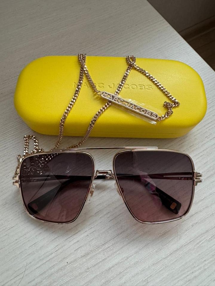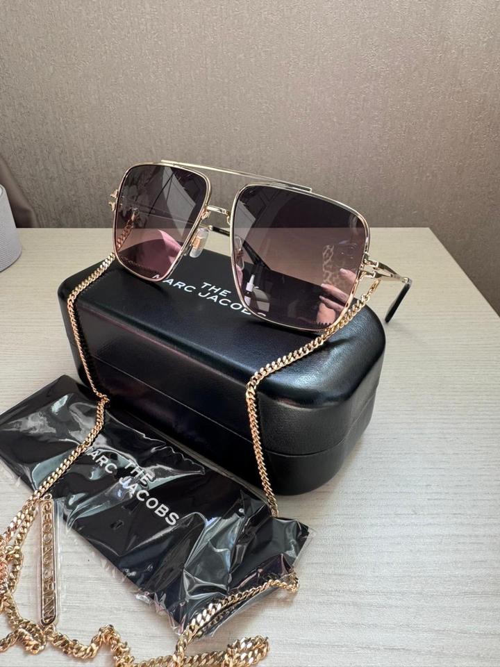 Абсолютно новые солнцезащитные очки Marc Jacobs. Супер актуальная форма. Линзы коричнево-бордовый градиент. Полный комплект. Идут в комплекте с цепочкой. Сидят исключительно. Город Алматы. Артикул: 481484