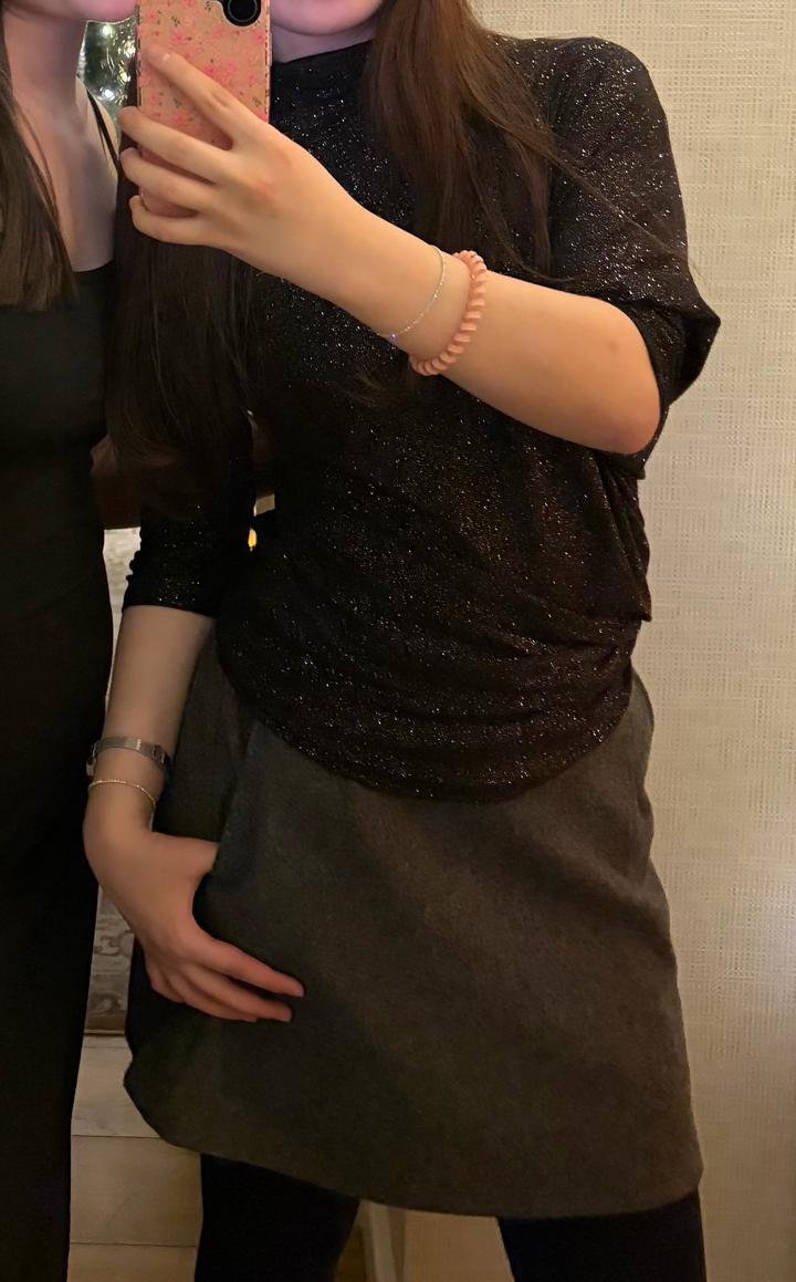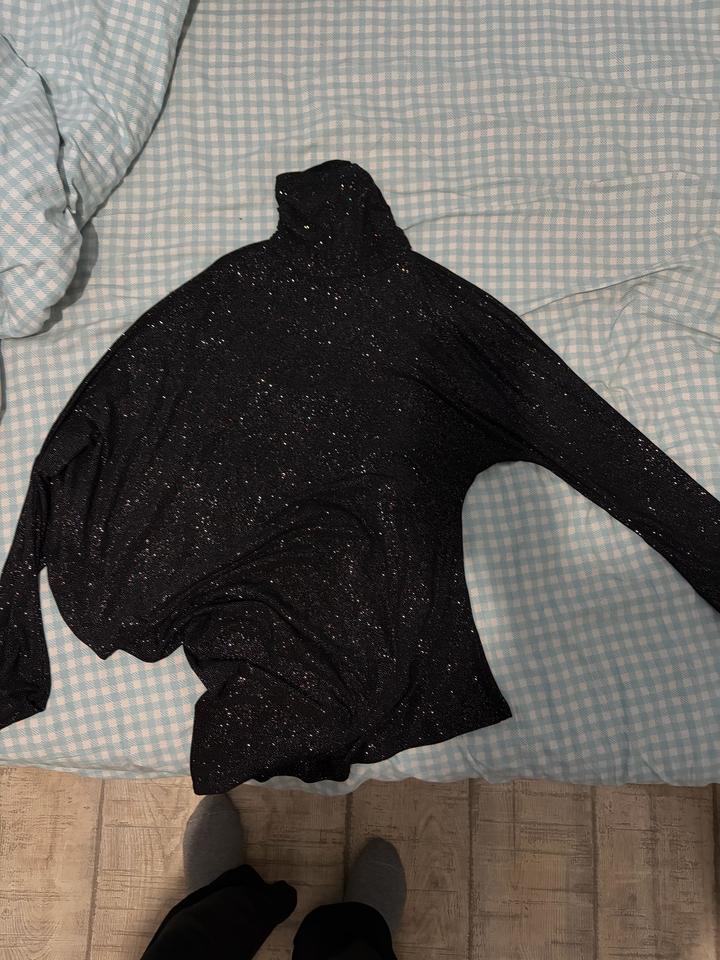 Блестящая необычная кофта. Одна сторона под рукавами висит а другая облегает более.носила один раз.размер M-L Артикул: 481520