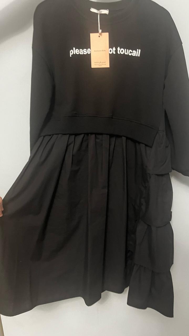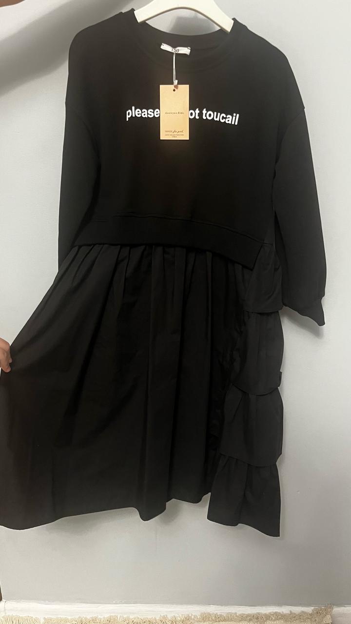 🖤 Стильное чёрное платье свободного кроя Эффектное и комфортное платье в современном стиле. Верх выполнен в виде мягкого свитшота с длинным рукавом и надписью “please do not touch”. Низ — пышная юбка с объёмными складками и оригинальной асимметричной оборкой сбоку, что придаёт образу изюминку и делает модель необычной. ✨ Свободный фасон — отлично скрывает нюансы фигуры ✨ Комфортная посадка ✨ Подойдёт на каждый день или на прогулку Лёгко сочетается с кроссовками, ботинками. Артикул: 481571
