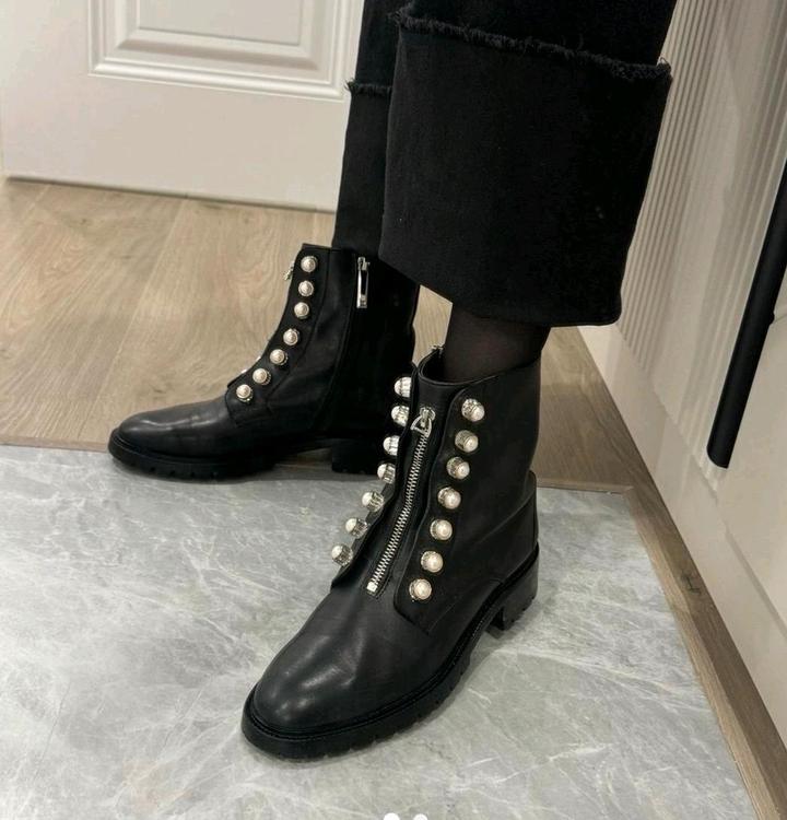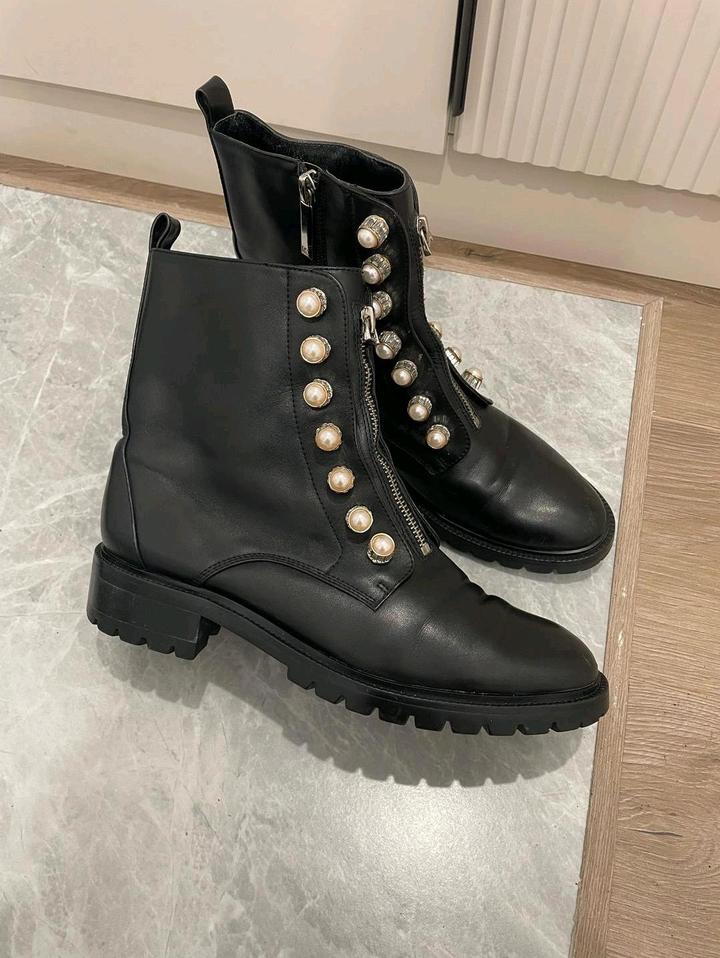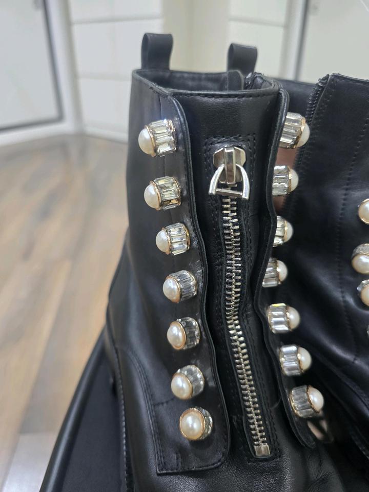 Стильные женские ботинки Basconi из гладкой телячьей кожи. Модель украшена декоративными элементами с жемчужными вставками и металлической молнией спереди. Размер 40 Артикул: 481607