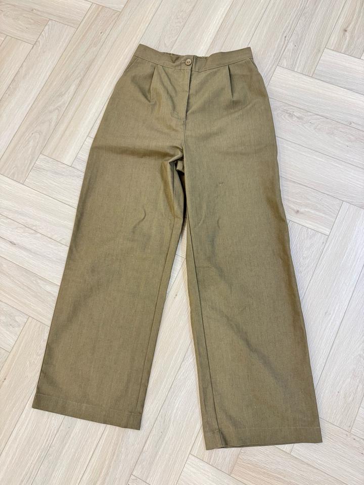 Абсолютно новые, ни разу не ношенные штаны из плотного лена. Не подошел размер. Подходит на XS-S, у меня ближе к М. Темно зеленый богатый цвет, идеально на весну. Артикул: 481610