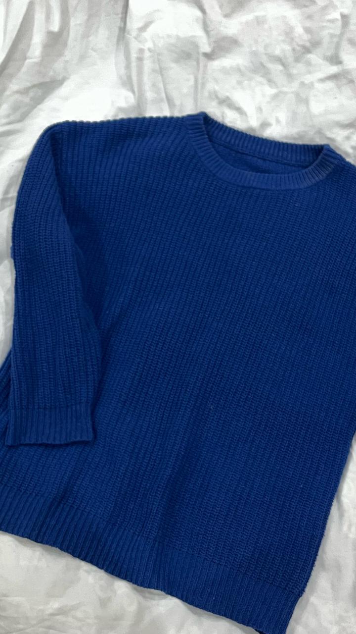 Джемпер в вязаном стиле. Красивый синий цвет. Хорошо подходит для многослойных образов. Размер: S/M Артикул: 481724