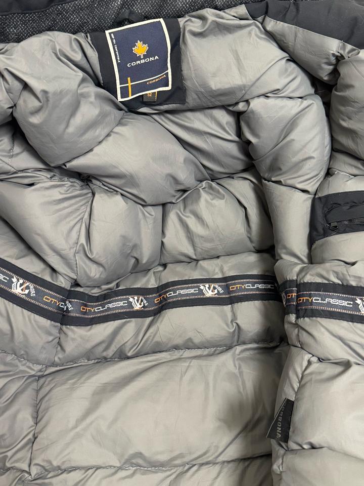 Мужская зимняя куртка Corbona Размер 52, цвет Black Blue. ▪️Стильная брендовая куртка в глубоком тёмно-синем оттенке. ▪️Плотная ветро- и влагозащитная ткань, тёплый утеплитель, аккуратная фирменная фурнитура и удобные карманы. ▪️Лаконичный городской дизайн — отлично смотрится как с классикой, так и с повседневной одеждой. Состояние практически новое — надевалась всего пару раз. Продаётся, потому что не подошёл размер. Отличный вариант брендовой зимней куртки, которая прослужит не один сезон. Артикул: 481830