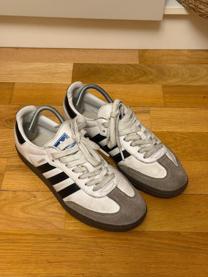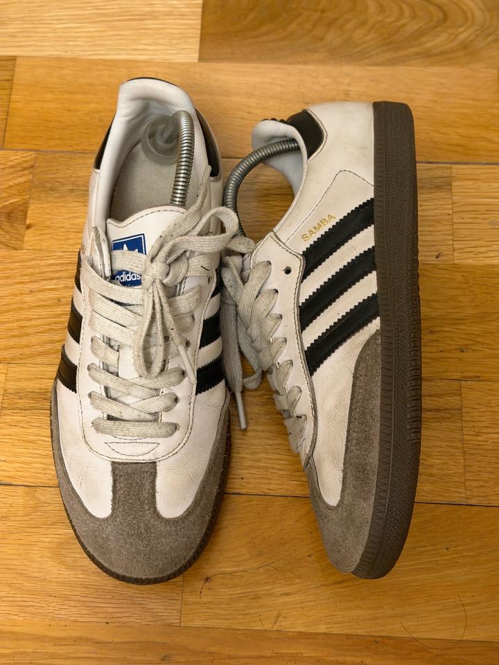 Продам кроссовки Adidas Samba. Размер 38. Классическая модель в белом цвете с черными полосками. Натуральная кожа и замша, удобные и стильные для повседневной носки. Состояние хорошее. Легендарная модель, которая всегда остается в моде. Брала в Америке Артикул: 481874