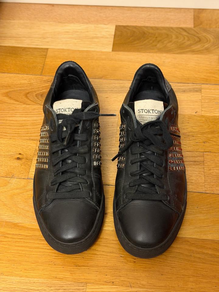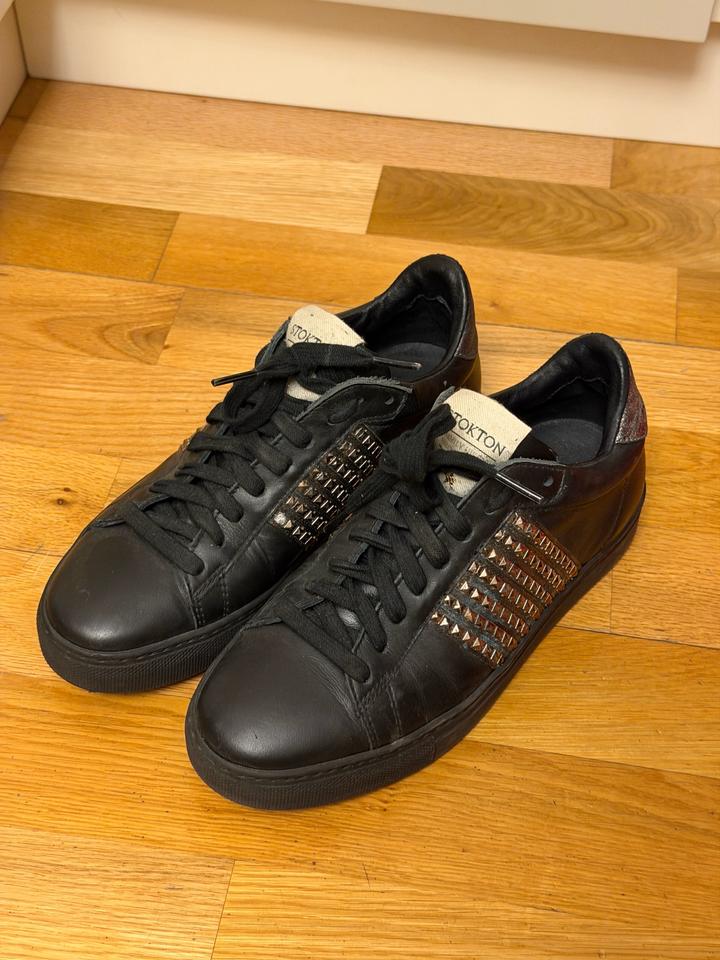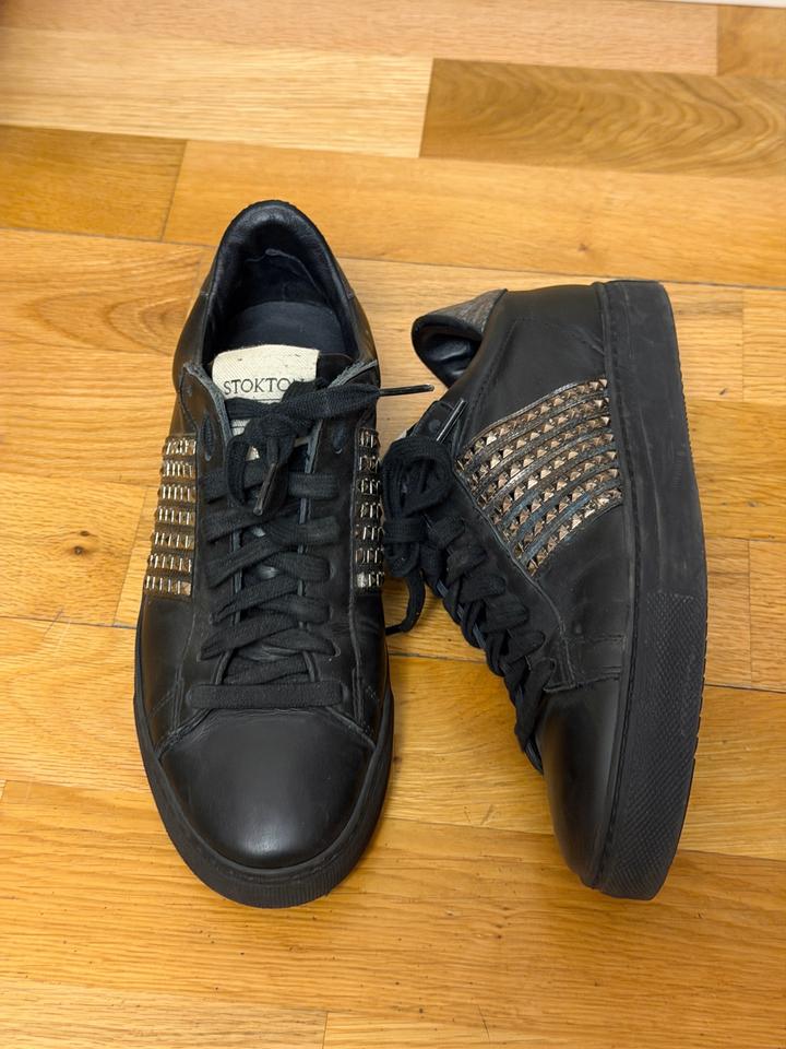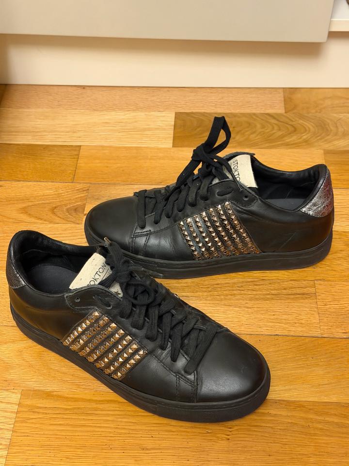 Кеды Stokton Продам стильные кеды Stokton. Размер 38. Натуральная кожа, черный цвет с металлическим декором. Stokton — итальянский бренд премиальной обуви, известный качественными материалами и стильным дизайном. Обувь очень удобная и долговечная. Подойдут для повседневки и на вечер. Состояние отличное. Артикул: 481893