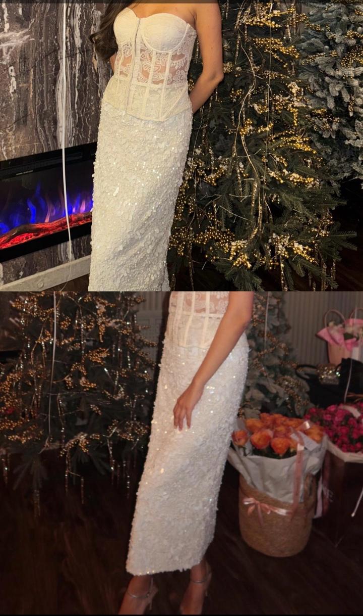 Вечерняя юбка с пайетками, цвет айвори, в отличном состоянии, размер S, идеально сочетается с корсетом. Носила 1час, брала для фотосессии. Артикул: 481990