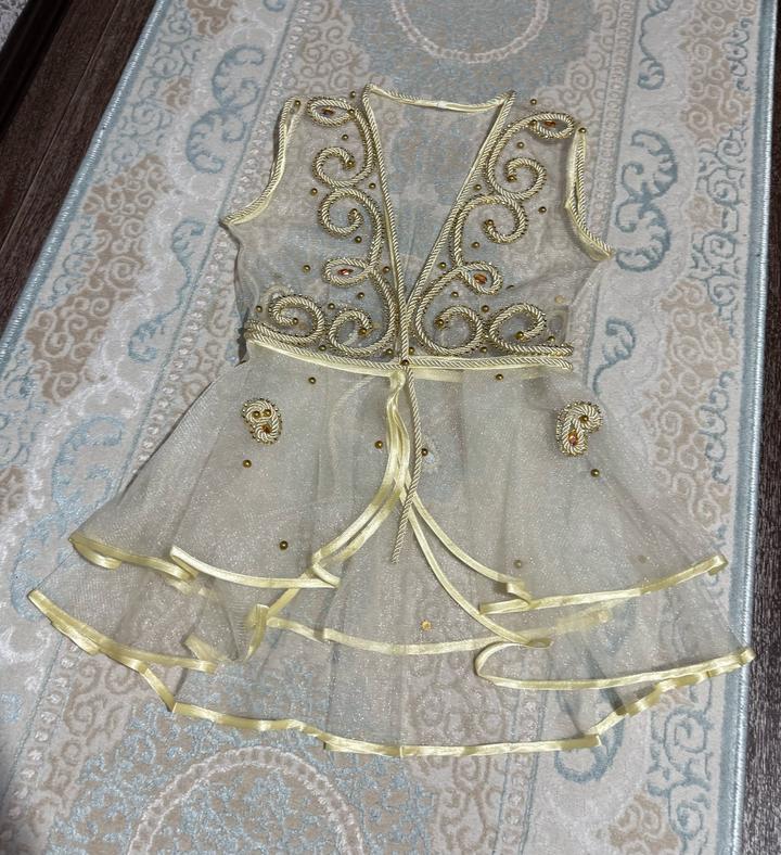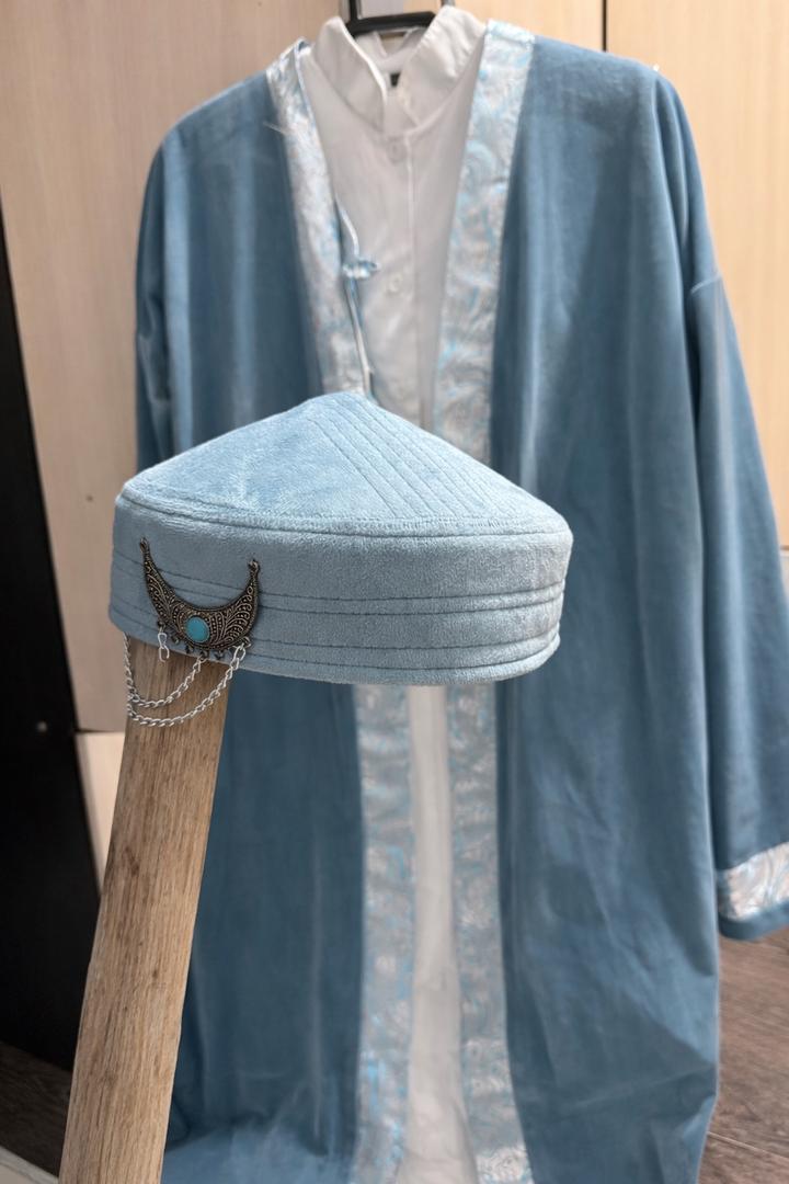 Голубой шапан, жилетка, платье, тюбетейка, 2 пояса 42р И второй набор белое платье с жилеткой 42р В хорошем состоянии Артикул: 482156