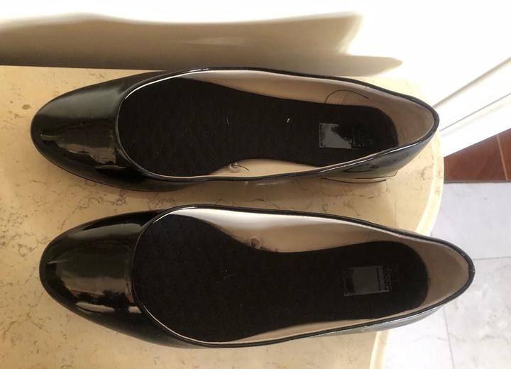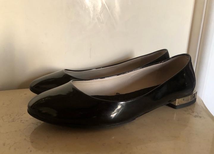 Балетки черные лакированные Zara на каблучке, состояние отличное. На подошве и на каблуке профилактика. Артикул: 482201
