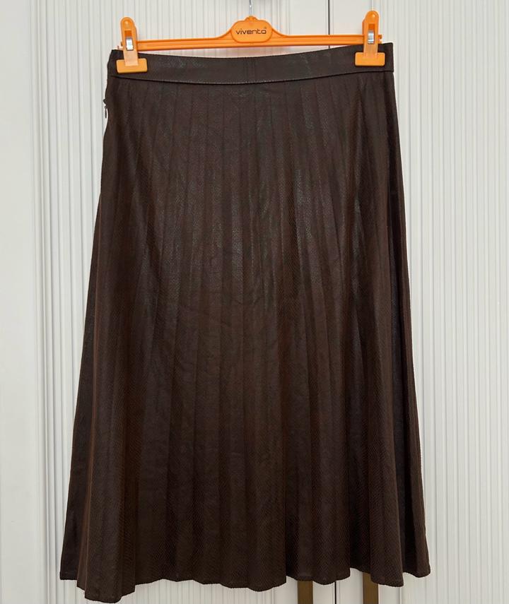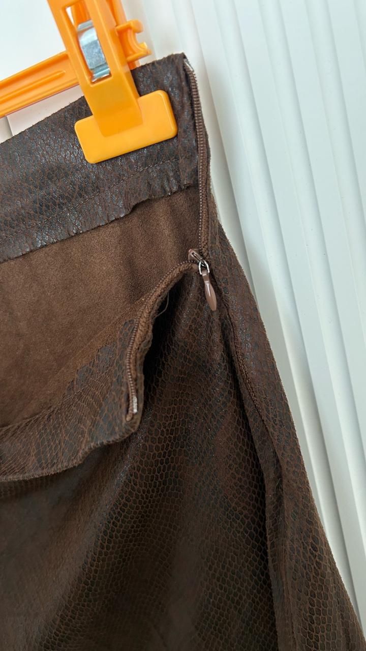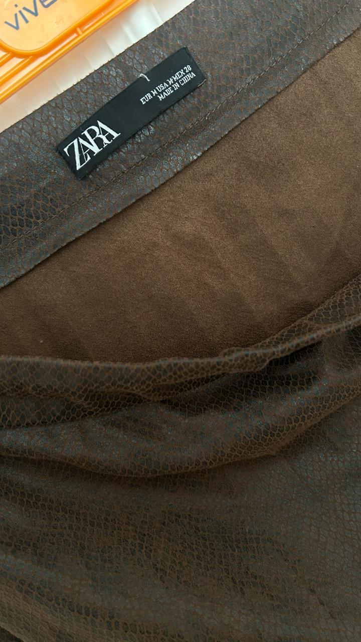 Продаю красивую юбку от Zara в красивом коричневом цвете, юбка сделана с эффектом кожи питона, отличный вариант на весну и осень. Носилась хорошо, поэтому заедает замок, в случае покупки надо поменять в ателье, но сама юбка в очень хорошем состоянии, не считая этого изъяна. Артикул: 482222