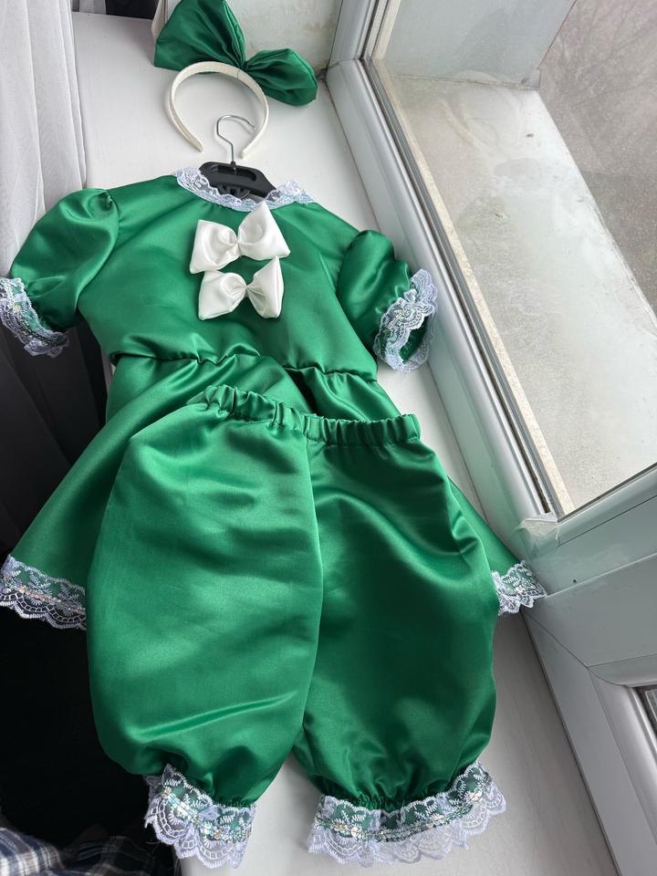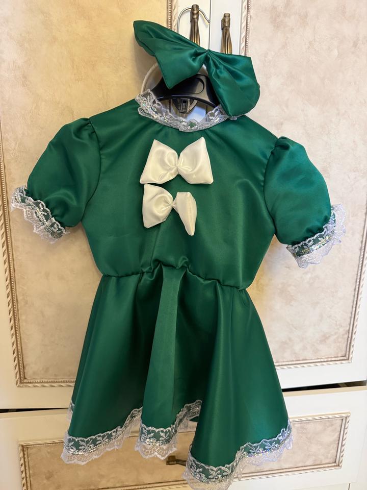 Платье сшитое на заказ зеленого цвета на возраст от 4 до 6 лет, дочке 6,5 было один раз на танец одевала. Платье из плотного материала, не синтетика. 116/120 размер Артикул: 482377