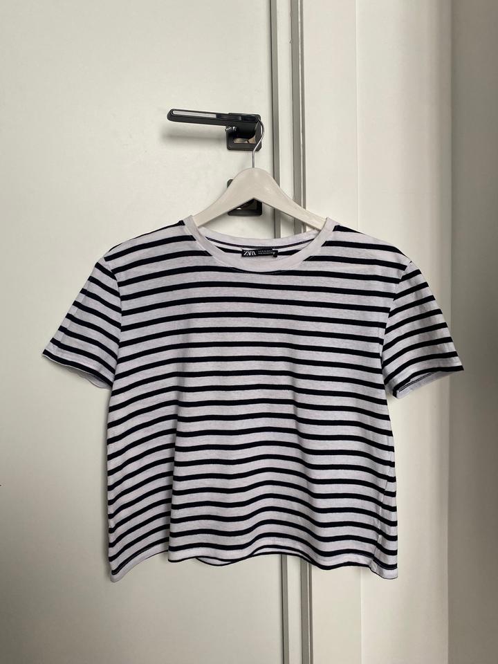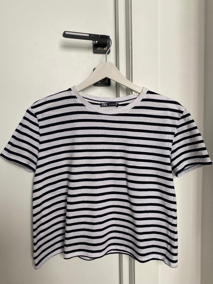 Полосотая укороченная футболка Zara Артикул: 482384