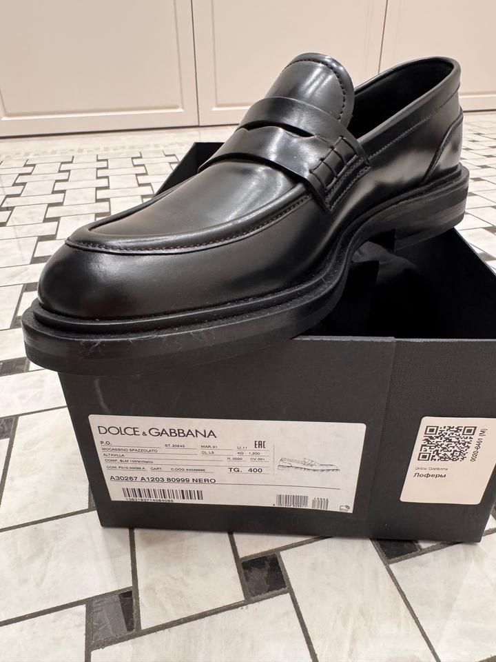 Черные кожаные лоферы Dolce Gabbana 40 размер Оригинал. Абсолютно новые, не подошел размер. На среднюю и небольшую полноту стопы подойдут отлично. Унисекс. В комплекте коробка и пыльники. Артикул: 482540