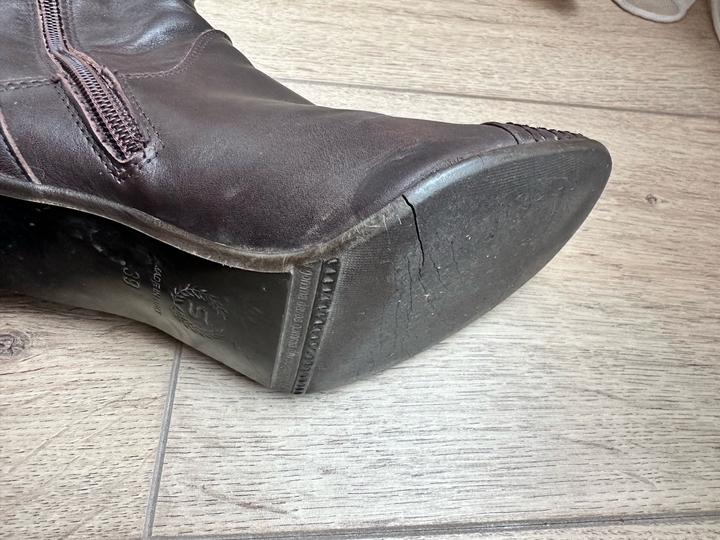 Итальянские сапоги от бренда Santini из настоящей кожи. Сапожки прослужили более 10 лет, кожа на сапогах в идеальном состоянии. Из минусов на подошве имеются легкие трещины. Продемонстрировано на фото. Это учтено при формировании цены. Размер 39. Артикул: 482555