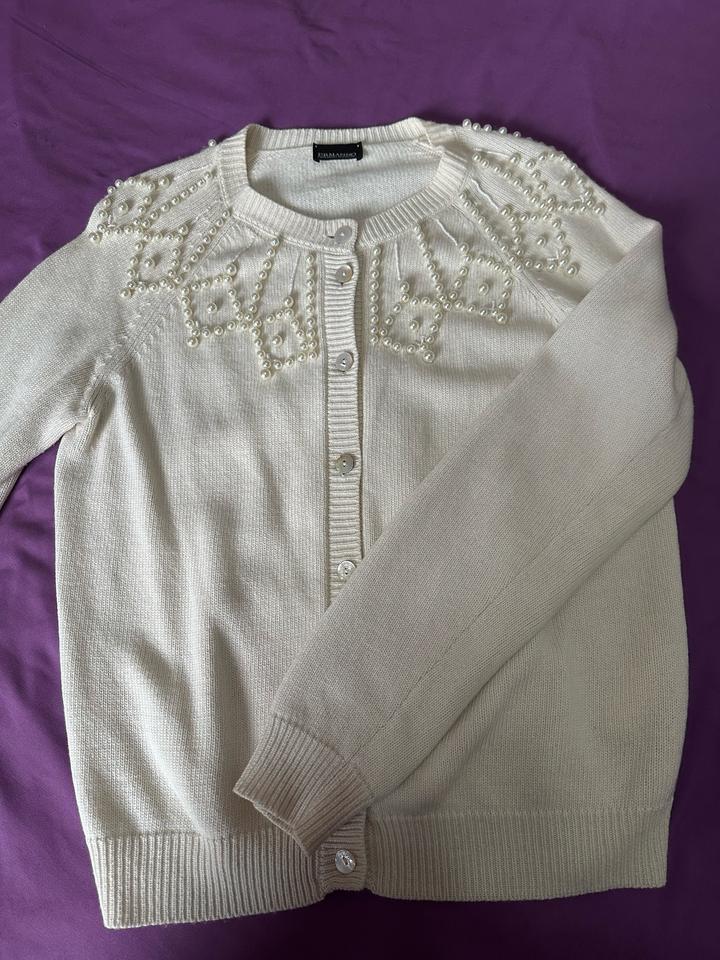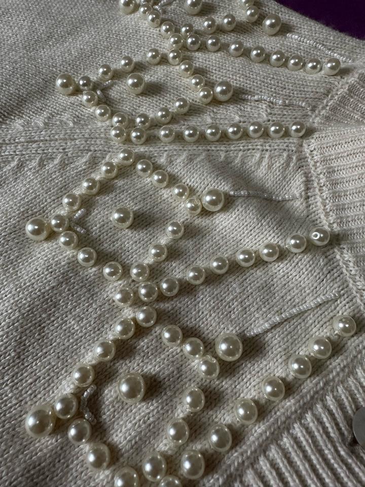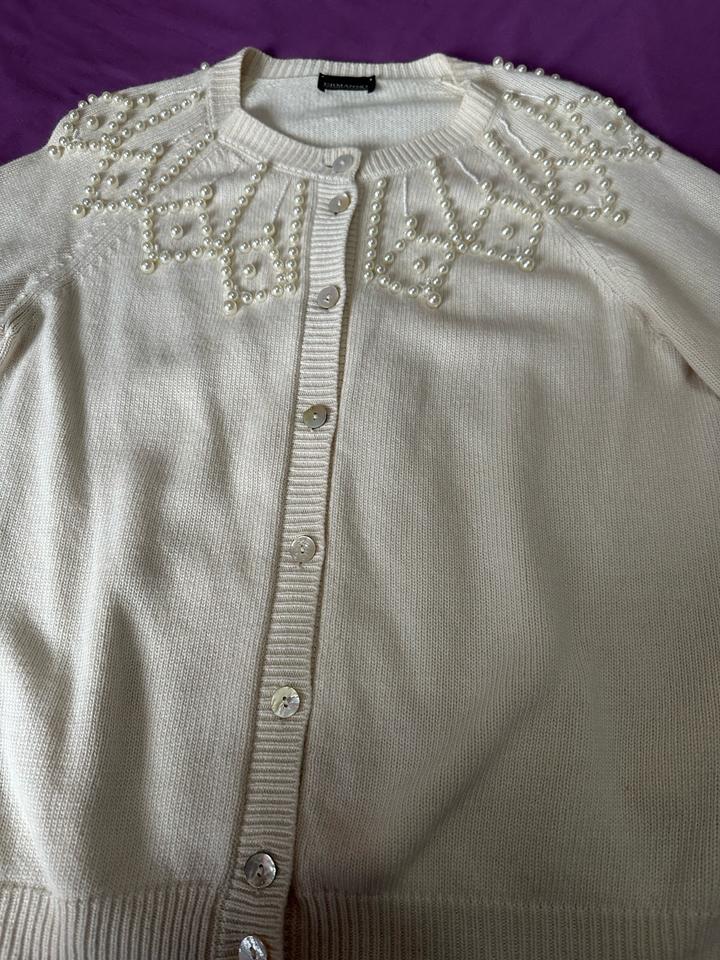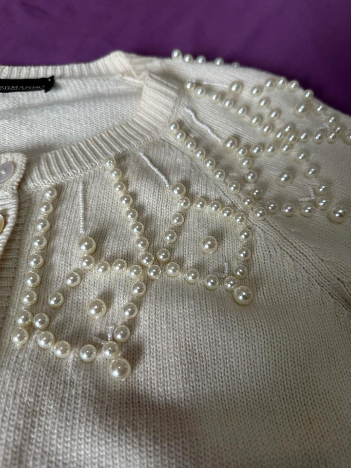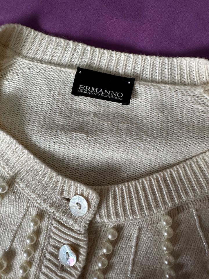 Продам кардиган/джемпер Ermanno Scervino, оригинал. В составе ткани кашемир и шерсть! Инкрустирован жемчугами. Все жемчуги на месте! Был куплен за 1 миллион 200 тысяч! В отличном состоянии Артикул: 482612