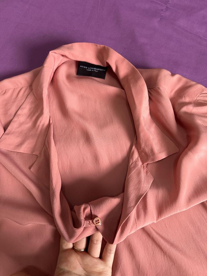 Блузка от итальянского бренда Atos Lombardini, в отличном состоянии. В составе есть натуральный шелк! Цвет персиковый Артикул: 482639
