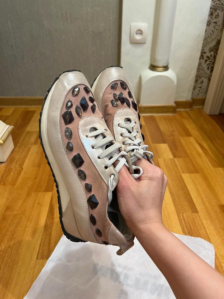 кроссовки нежно-бежевого цвета с декоративными камнями. Качество отличное . Можно носить и в спортивном стиле и с платьями и кэжуал. Покупала дорого в Стамбуле Артикул: 482680