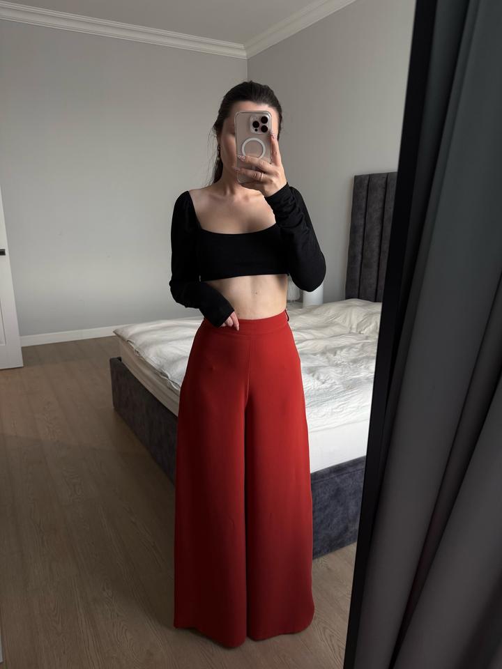Легкие летние струящиеся брюки. Оранжевый красивый оттенок, не яркий, а приглушенный. Красиво струятся при движении. Разгружаю гардероб, потому что прибавила в весе. Брюки хорошо вытягивают рост Артикул: 482767