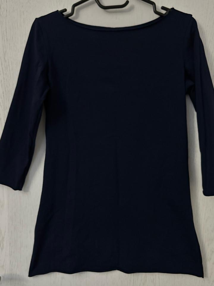 Синий удлиненный лонгслив, с рукавами 3/4. Размер s/m. 92% хлопок, 8% эластан. Артикул: 482791