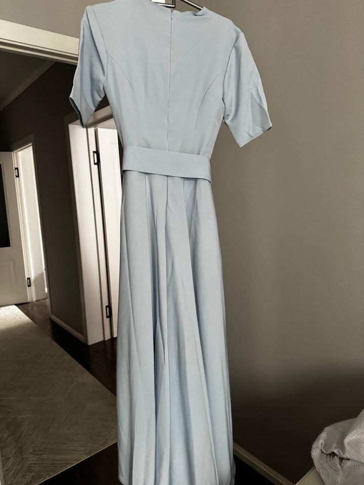 Платье нежно голубого цвета. Рукава короткие. Длина миди. Размер 44. Носила всего раз. Артикул: 482805