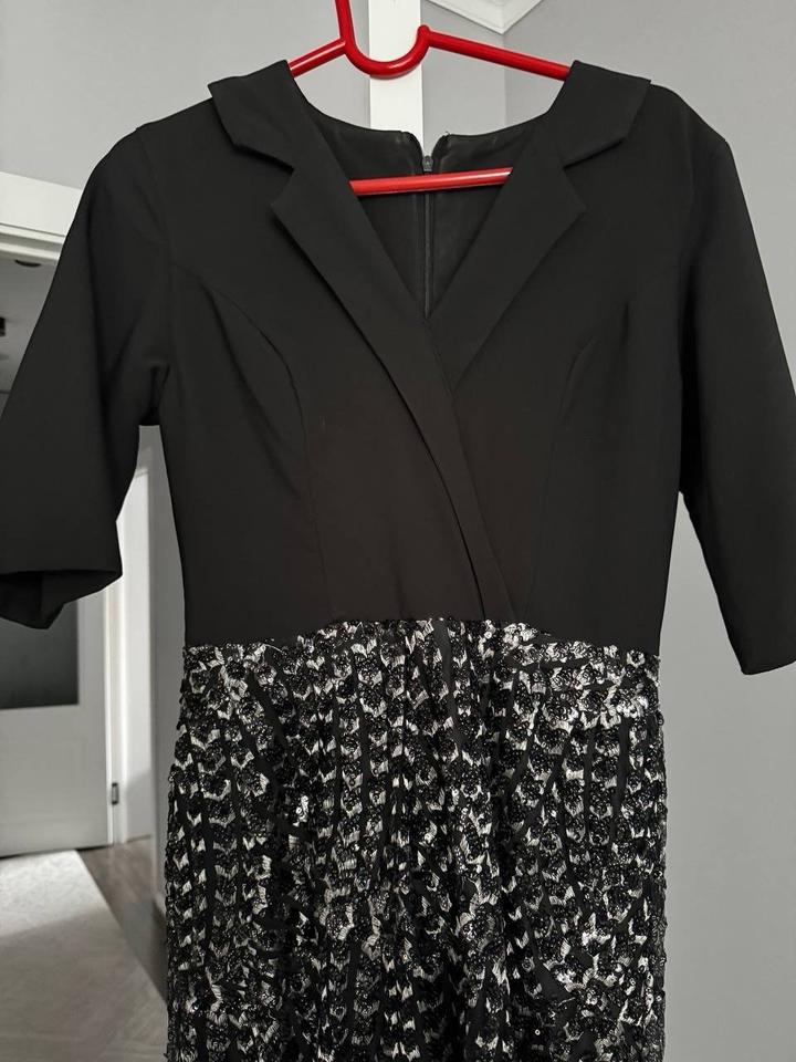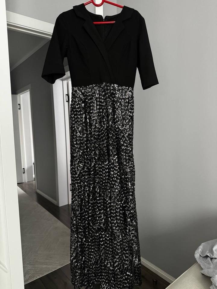 Шикарное вечернее платье. Длина в пол. Размер 44 и на 46 может подойти. Верх черного цвета, низ в серебристых и черных пайедках. Будет шикарно на НГ, корпоративы, свадьбы. Носила всего раз. Артикул: 482811