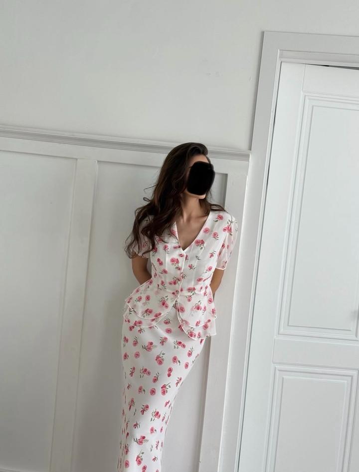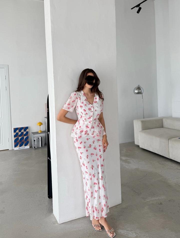 Новый костюм (юбка на молнии, и жакет с баской на пуговицах) Размер S ( 88-68-96 ( ог-от-об)) Ткань шифон Артикул: 482831