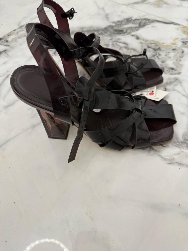 Стильные сандалии ZARA из полупрозрачного материала в тёмном оттенке. Модная минималистичная модель с тонкими ремешками и аккуратной застёжкой на щиколотке — идеальный вариант для летних образов. • Бренд: ZARA • Материал: прозрачный / PVC • Цвет: тёмный (дымчатый) • Регулируемые ремешки • Квадратный носок • Лёгкая и удобная модель Отлично сочетаются с платьями, шортами, юбками и летними костюмами. Артикул: 482875