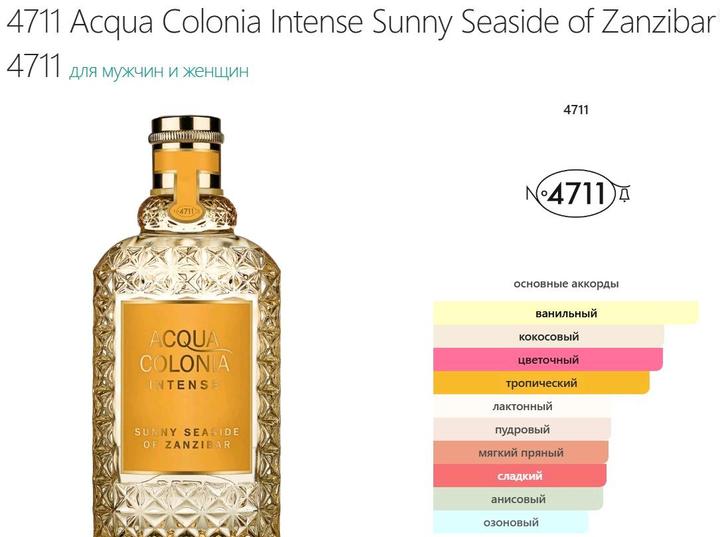 4711 Acqua Colonia Intense Sunny Seaside of Zanzibar 50 ml Cologne Intense. Оригинал Артикул: 482877
